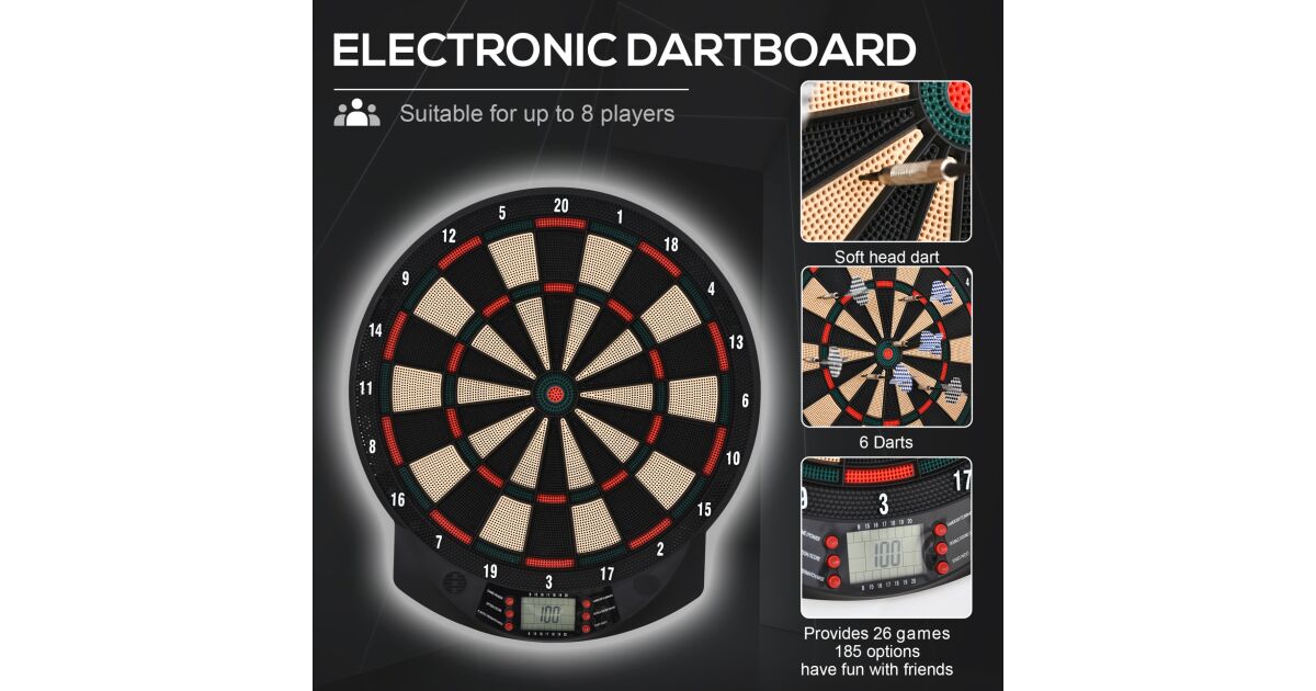 HOMCOM Elektronikus PP Darts Tábla 6 Darts-szal és Pontozótáblával, 44x39,5x2,2cm, Fekete leírása