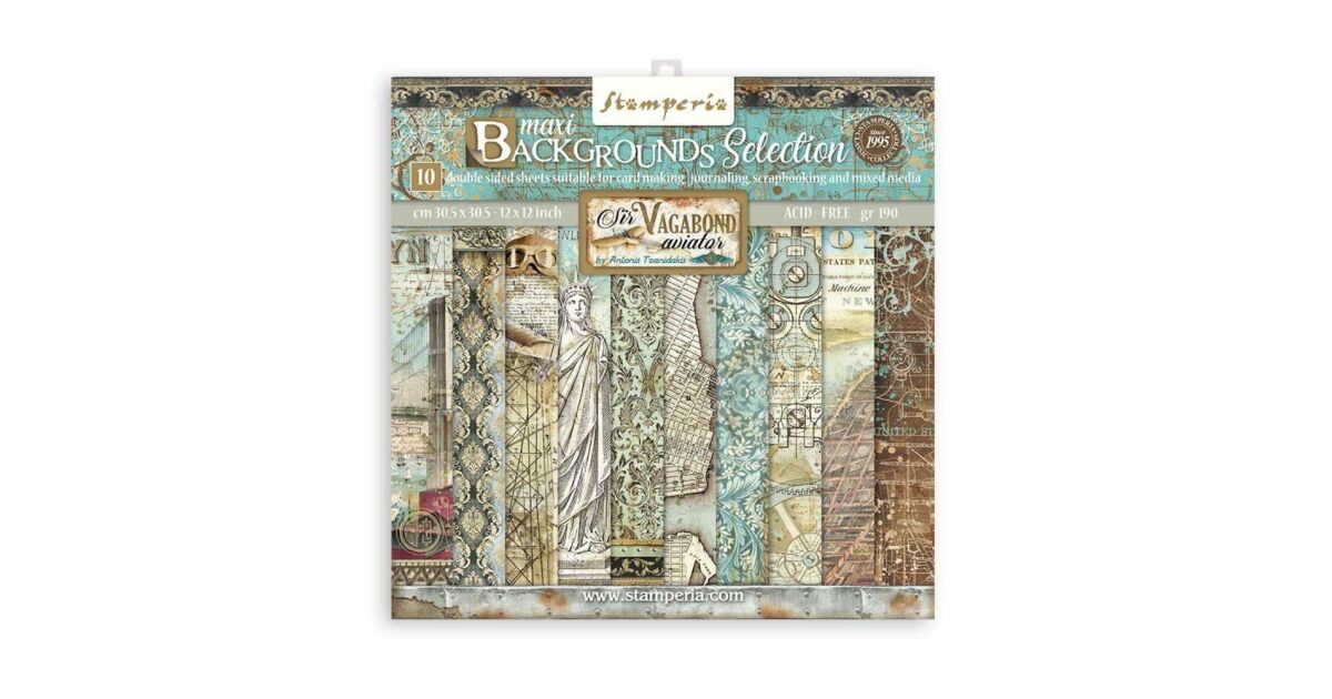 Stamperia Sir Vagabond Aviator Scrapbook Papír Tömb - 10 lapos, 30,5x30,5 cm ✈️