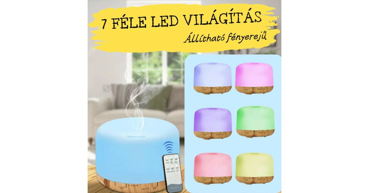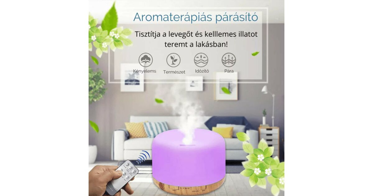 Ez az Ultrahangos párásító és aromaterápiás diffúzor időzító funkcióval rendelkezik és távirányítóval irányítható. Alacsony feszültségű, ultrahangos technológiával működő készülék, csendes és biztonságos működést biztosít minden felhasználó számára! 7 színű hangulatvilágítással rendelkezik, a színek automatikus színváltásra állíthatók. A hosszantartó működést, a nagy kapacitású, 500 ml űrtartalmű tartály biztosítja. A kényelmes kezelés érdekében távirányítóval rendelkezik, így távolról is irányítható, amivel időt és energiát spórolhatsz meg. A készülék automatikusan kikapcsol, ha elfogy a víz. Aromaterápiás párásítónk megtisztítja a levegőt, oldja a stresszt, ellazítja a testet, és lehetővé teszi a kényelmes és nyugodt időtöltést. Minimalista kialakítása bármilyen típusú helyiségbe beilleszthető. Most egy 12 db-os Pulaiyi illóolaj készletet is bezsebelhetsz hozzá szettben, mellyel azonnal a nyugalom szigetévé varázsolhatod a lakásodat.