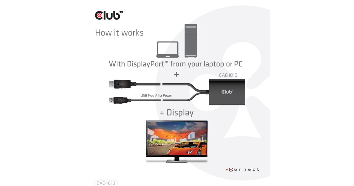 - Club3D CAC-1010-A DisplayPort - Dual Link DVI-D aktív adapter