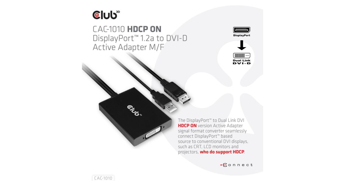 Club3D DisplayPort - Dual Link DVI-D Aktív Adapter: HDCP kikapcsolható