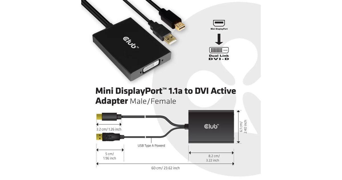 Club3D Mini DisplayPort - Dual Link DVI Aktív Adapter: Tökéletes képminőség a régi és új kijelzőkön 🖥️