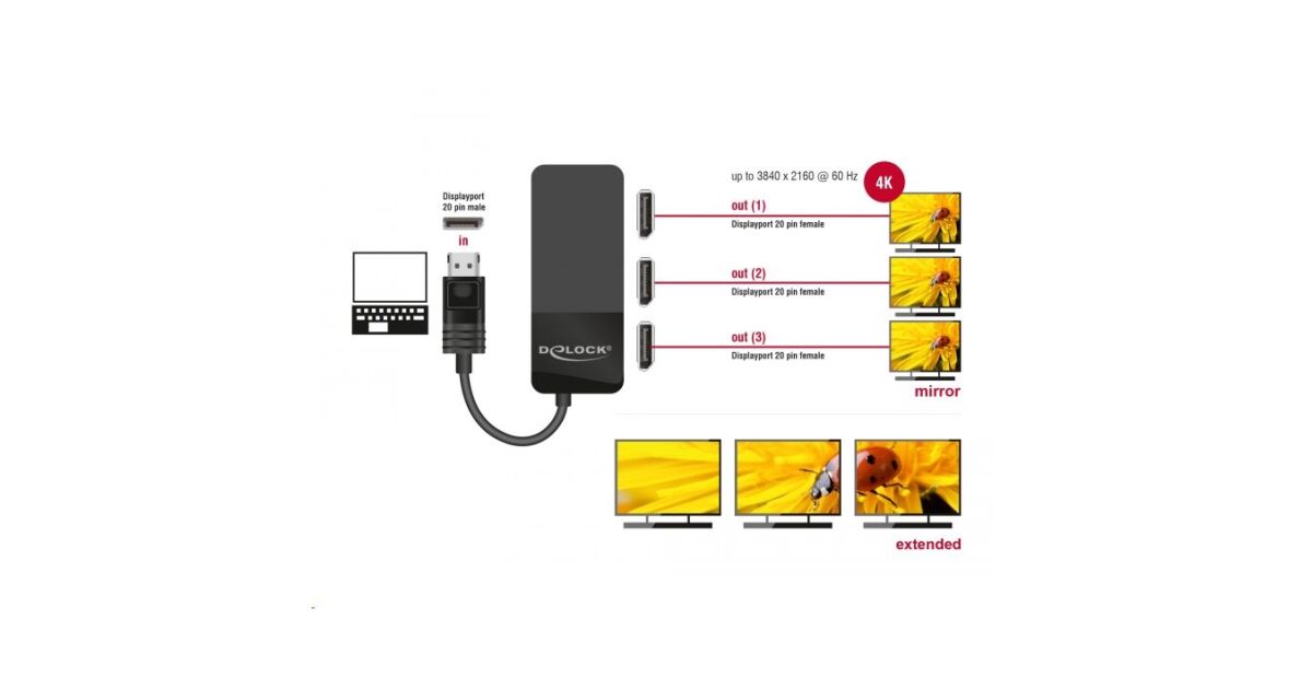 Delock DisplayPort 1.4 Splitter: Ossza meg a 4K tartalmat három kijelzőn! 🖥️🖥️🖥️