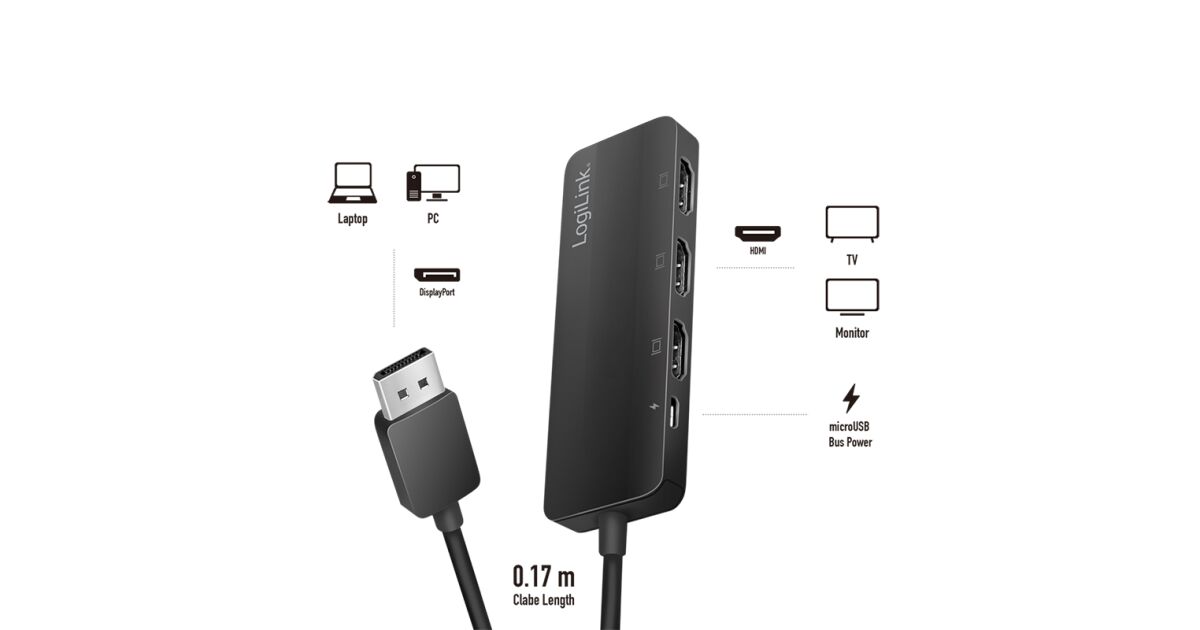 Logilink DisplayPort elosztó, 1x3 port, 1x DP - 3x HDMI, 4K/60 Hz, HDCP, MST vásárlás: