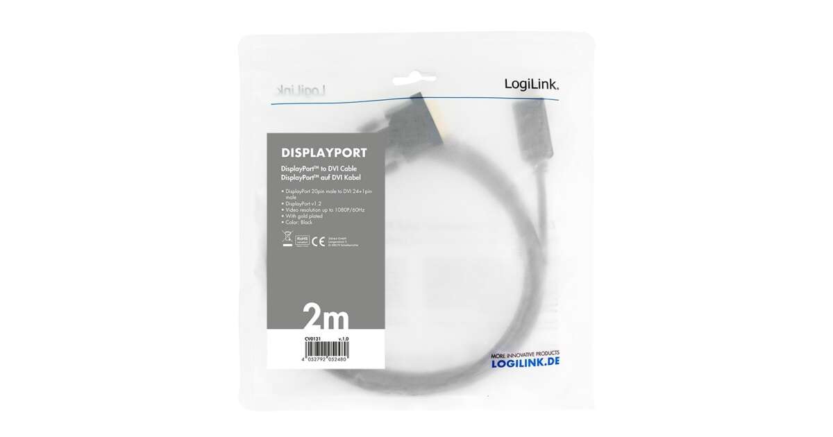 A Logilink DisplayPort - DVI kábel a tökéletes választás, ha kiváló minőségű, megbízható adatátvitelt keresel Full HD felbontásban.