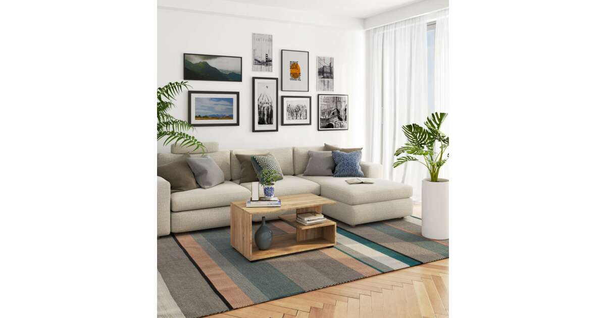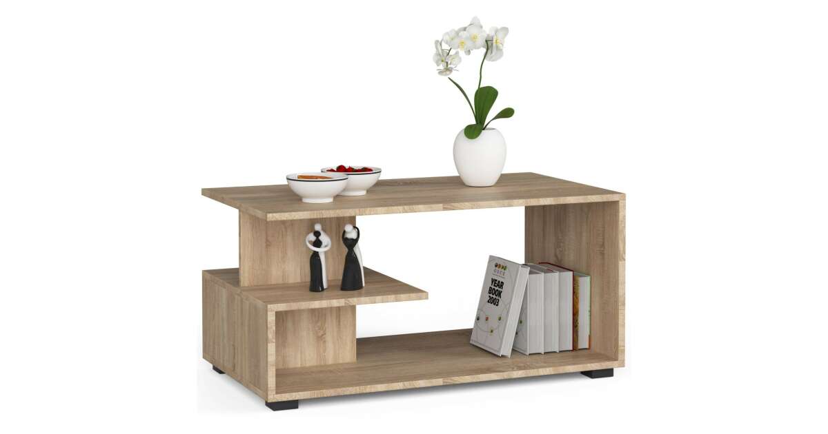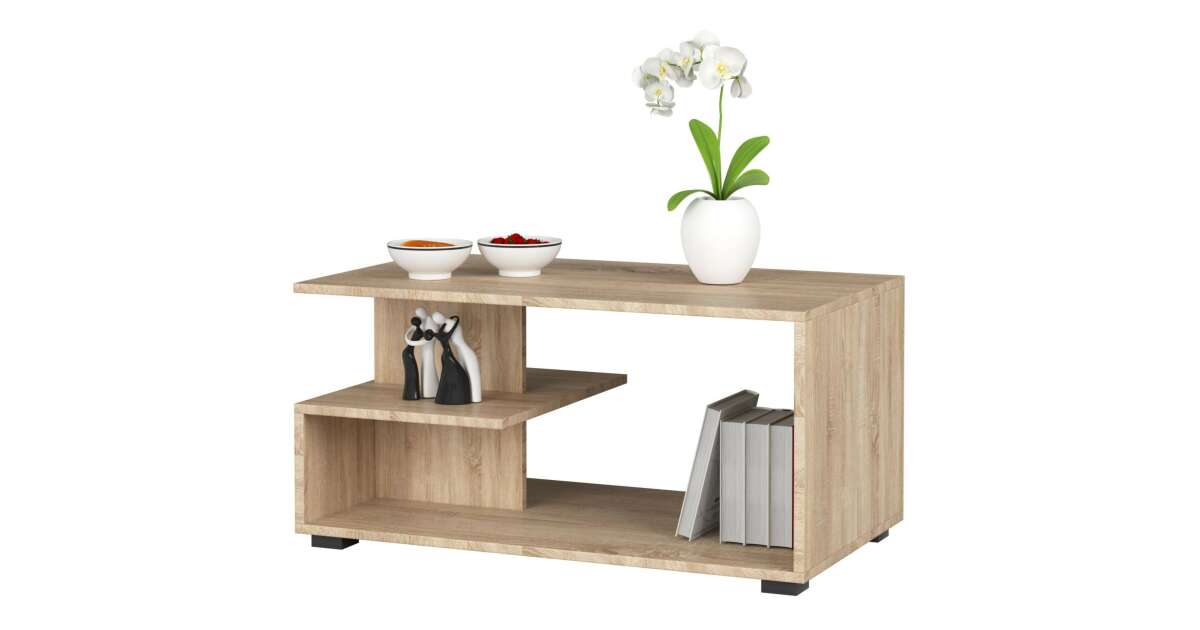 Ezt a terméket így is ismerheted: Akord - Modern Stílusú Dohányzóasztal, Sonoma Tölgy Dekor, Laminált Lapból, 90x45x51 cm