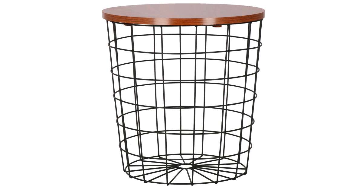 Kerek asztal tárolókosárral, MDF, fém lábazat, fekete és barna, 30,5/39x40 cm, Springos leírása