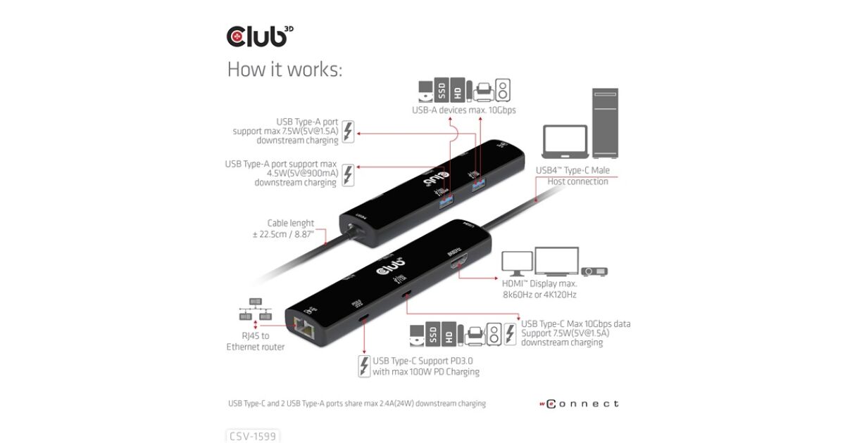Club3D USB 4 Dokkoló HDMI2.1 + 2 USB Type-C + 1 USB Type-A+RJ45 2.5 Gbps leírása