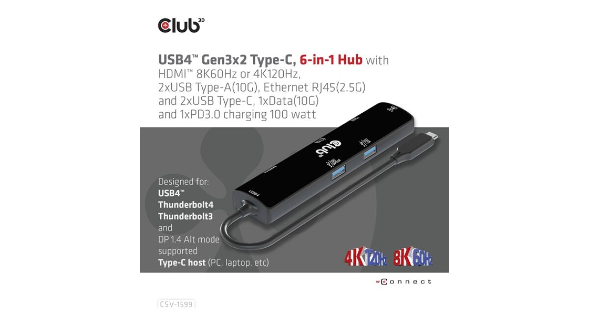 Club3D USB 4 Dokkoló HDMI2.1 + 2 USB Type-C + 1 USB Type-A+RJ45 2.5 Gbps vásárlás: