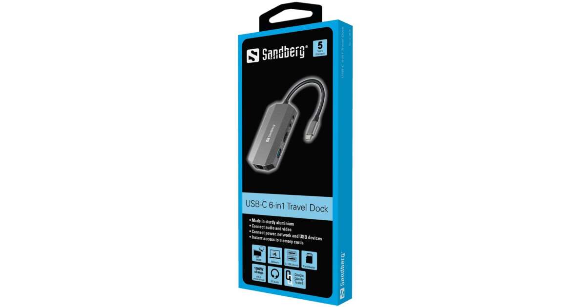 Ezt a terméket így is ismerheted: Sandberg Notebook Dokkoló - USB-C 6in1 Travel Dock (USB-C bemenet; HDMI+2xUSB3.0+USB-C+RJ45+SD kimenet)