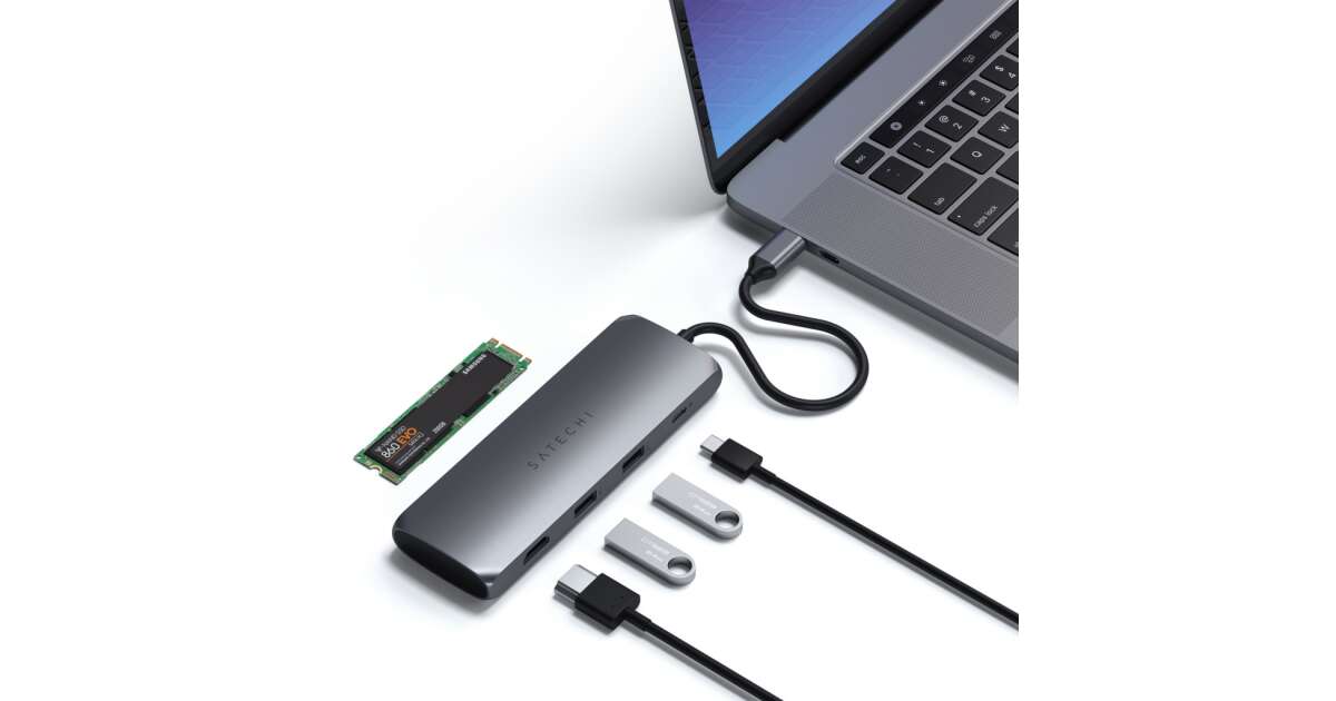 Satechi Aluminium USB-C Hybrid Multiport adapter (SSD Enclosure, HDMI 4K, 2 x USB-A 3.1 Gen 2 up to 10 Gbps) - Space Grey vásárlás: