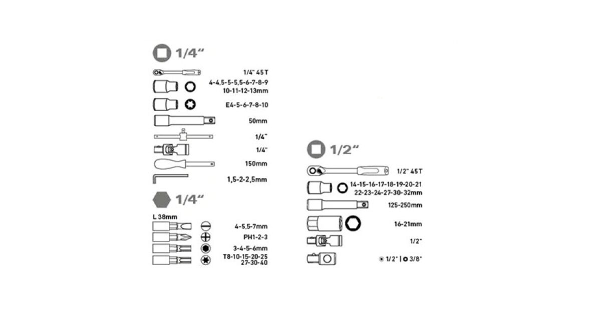 Extol Premium DUGÓKULCS KÉSZLET., RACSNIS, 1/4" ÉS 1/2", 65DB, DUGÓFEJEK (4-32MM), BITEK, FÉM DOBOZ 8818370 vélemények