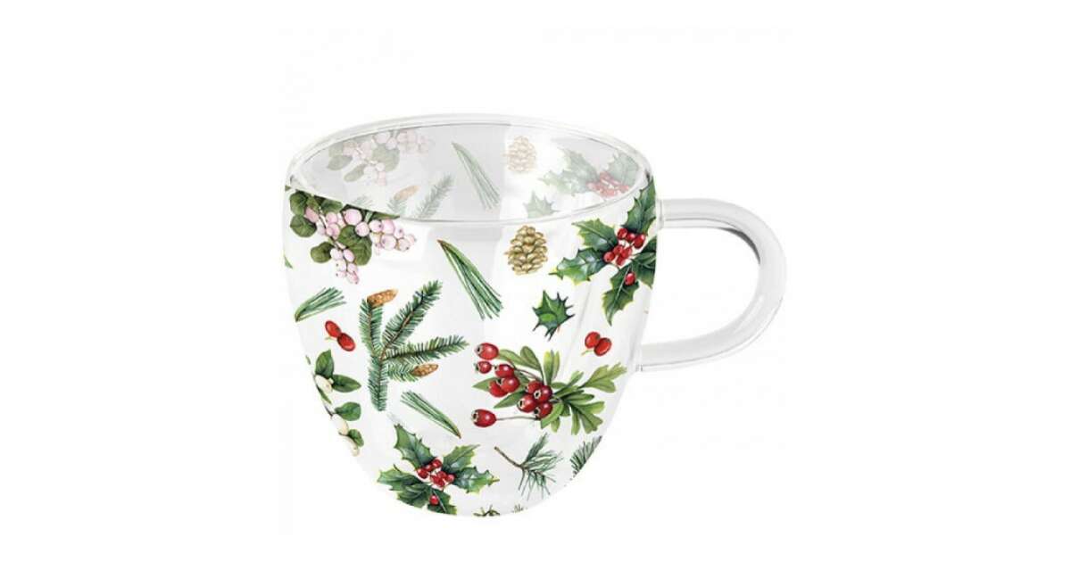 Ez a duplafalú borosilikát üveg csésze tökéletes választás a hideg téli napokra. A gyönyörű téli zöldség motívum vidám hangulatot kölcsönöz a reggeli kávézásnak vagy teázásnak. A duplafalú kialakításnak köszönhetően italod hosszabb ideig marad meleg.