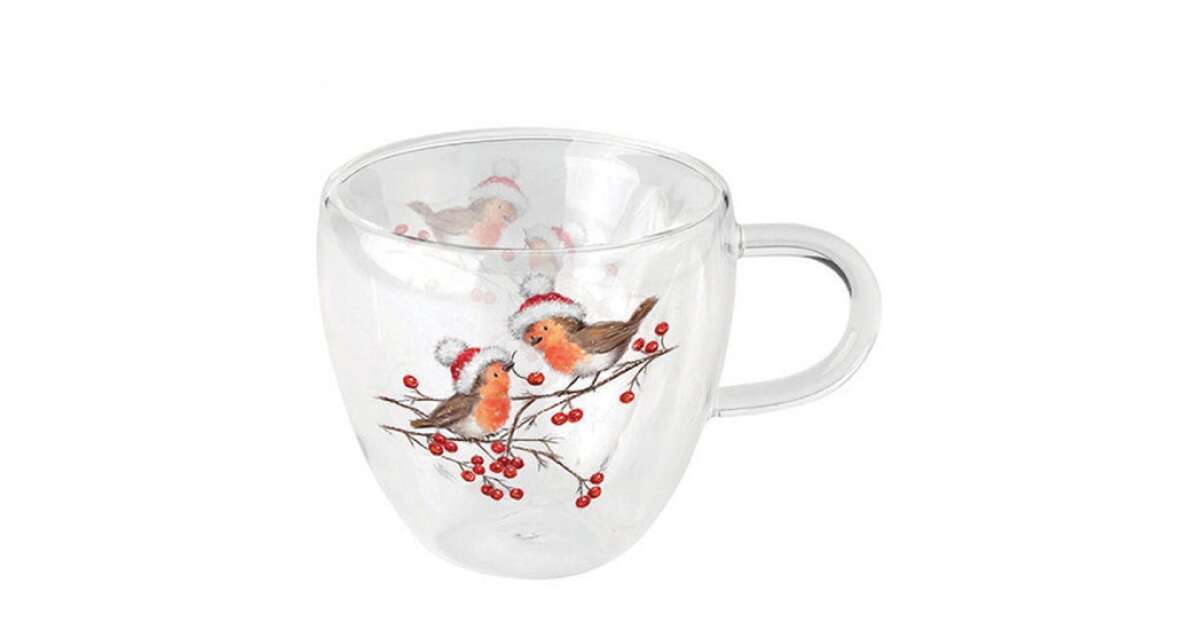 AMB.34418865 Christmas robins white duplafalú borosilicate üvegcsésze 0,25L