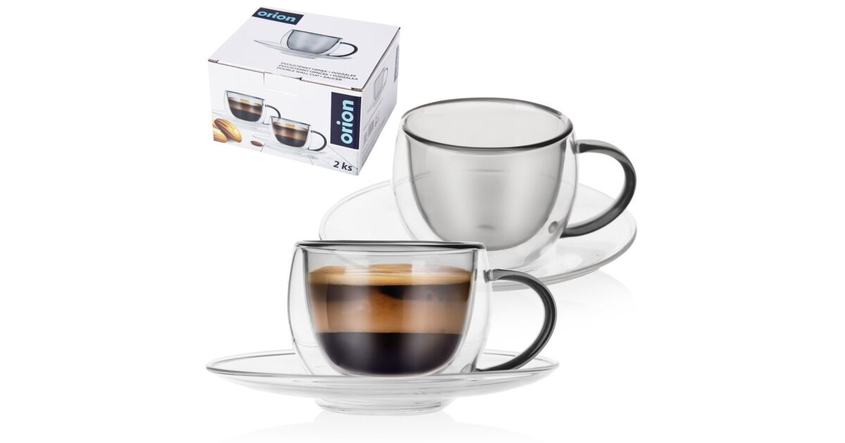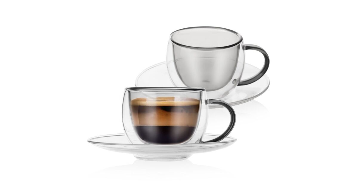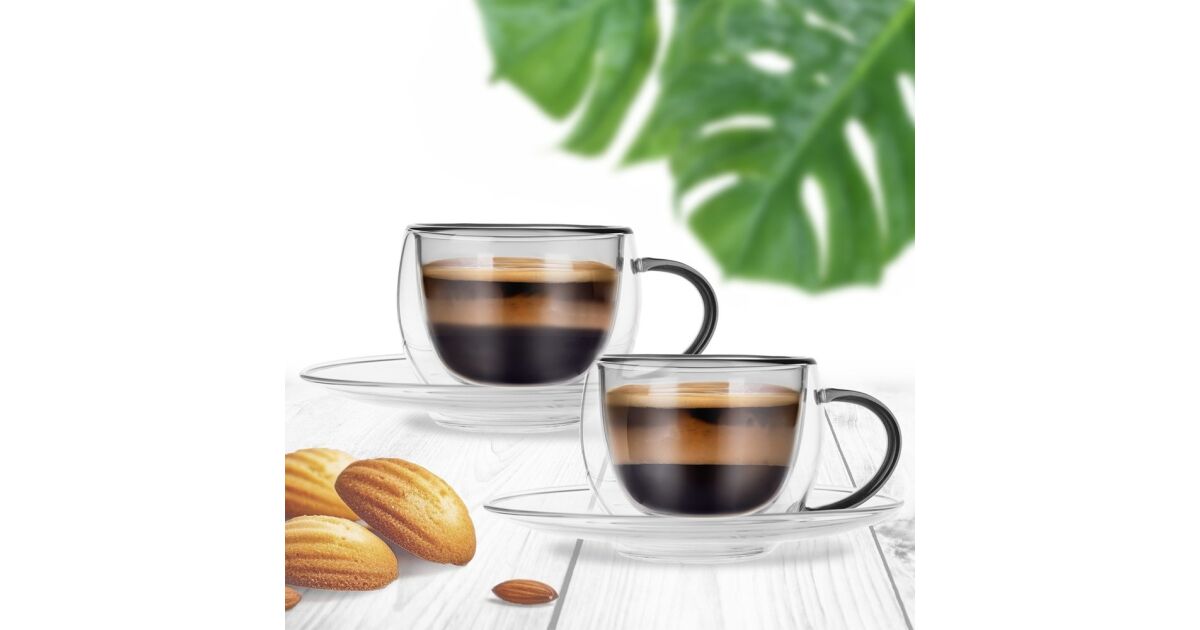 Duplafalú termoszpoharak csészealjjal eszpresszó kávéhoz DUPLA 90 ml 2 db.