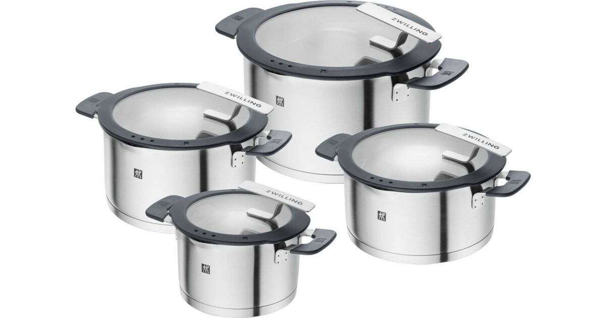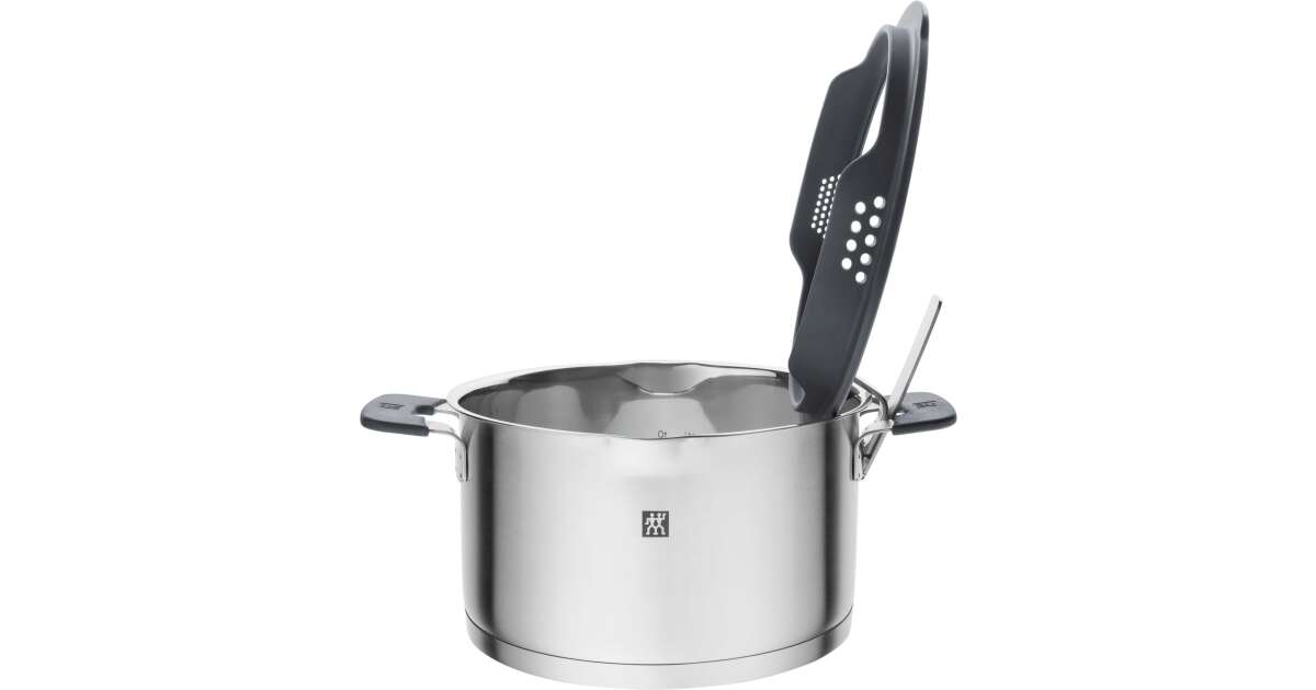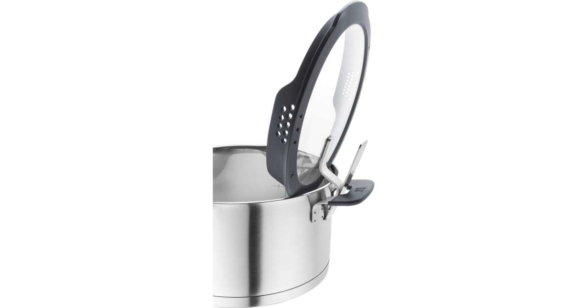 ZWILLING Simplify 4 Edényes KészletA Simplify edénysorozat innovatív funkcióival lenyűgöző, amelyek nagyobb főzési kényelmet biztosítanak. A fedőtartó lehetővé teszi, hogy főzés közben tartsa az üvegfedőt, így a konyhapult tiszta marad. A fedél szilikon peremébe beépített szűrő biztosítja a folyadékok egyszerű öntését. Matt rozsdamentes acélból és puha tapintású szürke szilikonból készült edények elegáns dizájnjukkal tűnnek ki.