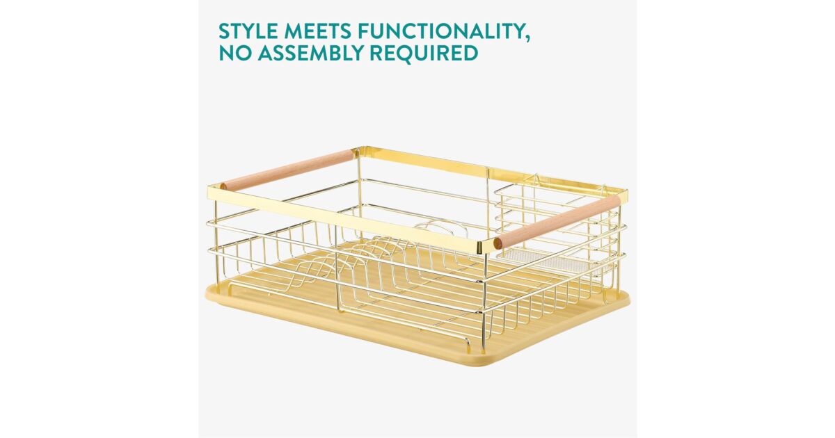 Navaris elegáns, arany színű edényszárító csepegtető tálcával és evőeszköztartóval - Könnyű szárítás és modern design ✨