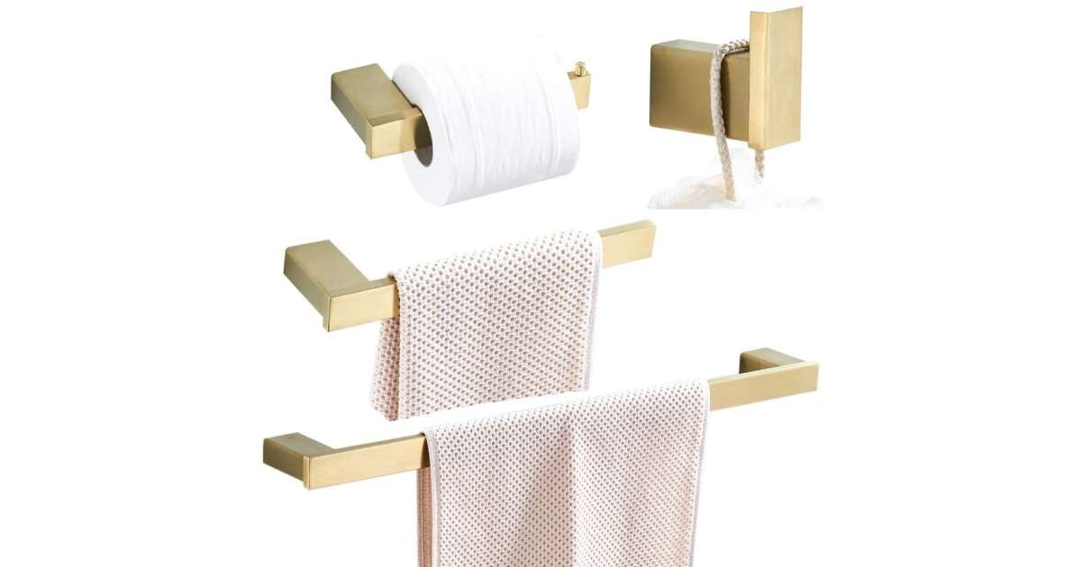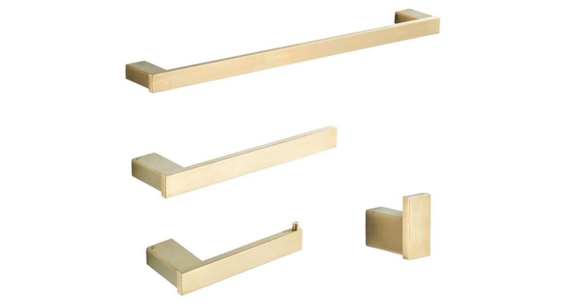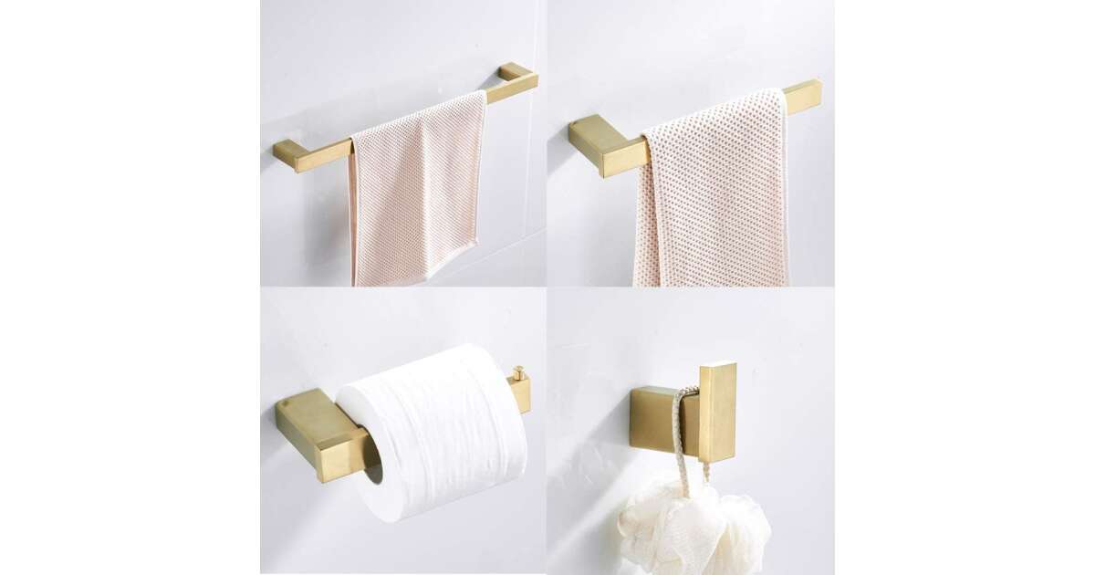 Elegáns, skandináv stílusú fürdőszoba kiegészítő szett, mely 4 darab matt arany színű tartót tartalmaz. A szett tökéletes választás, ha modern és stílusos megjelenést szeretnél fürdőszobádba. ✨