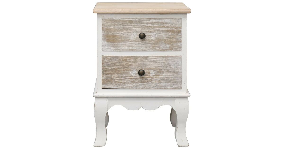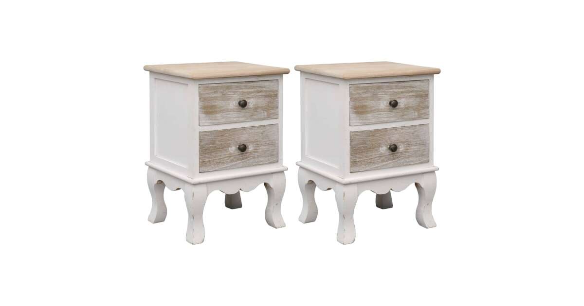 Elegáns császárfa éjjeliszekrény pár: 2 db, 2 fiókkal, fehér és natúr színben