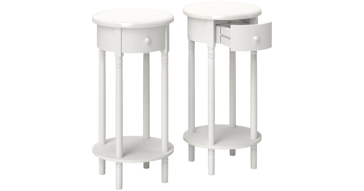 Ezt a terméket így is ismerheted: HOMCOM 2 db-os éjjeliszekrény szett fiókkal és polccal, modern stílusú fa dohányzóasztalok, Ø35,5x71 cm, fehér