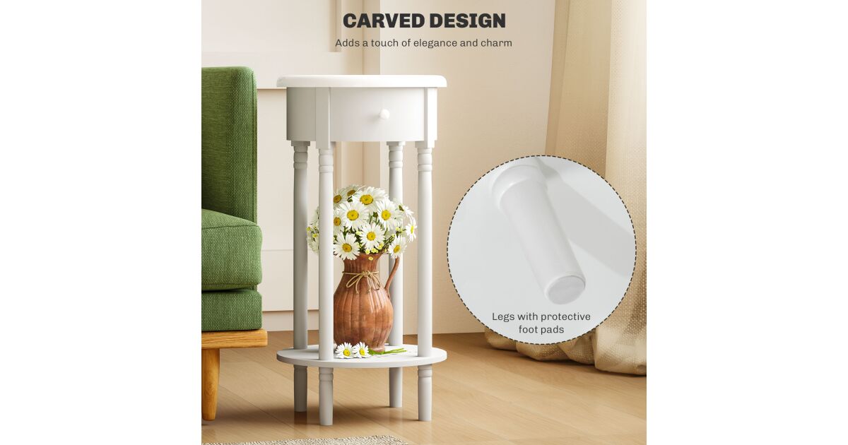 HOMCOM 2 db-os éjjeliszekrény szett fiókkal és polccal, modern stílusú fa dohányzóasztalok, Ø35,5x71 cm, fehér leírása