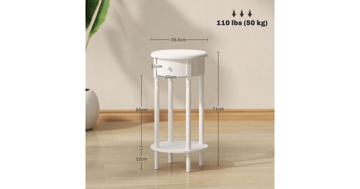 HOMCOM 2 db-os éjjeliszekrény szett fiókkal és polccal, modern stílusú fa dohányzóasztalok, Ø35,5x71 cm, fehér vélemények