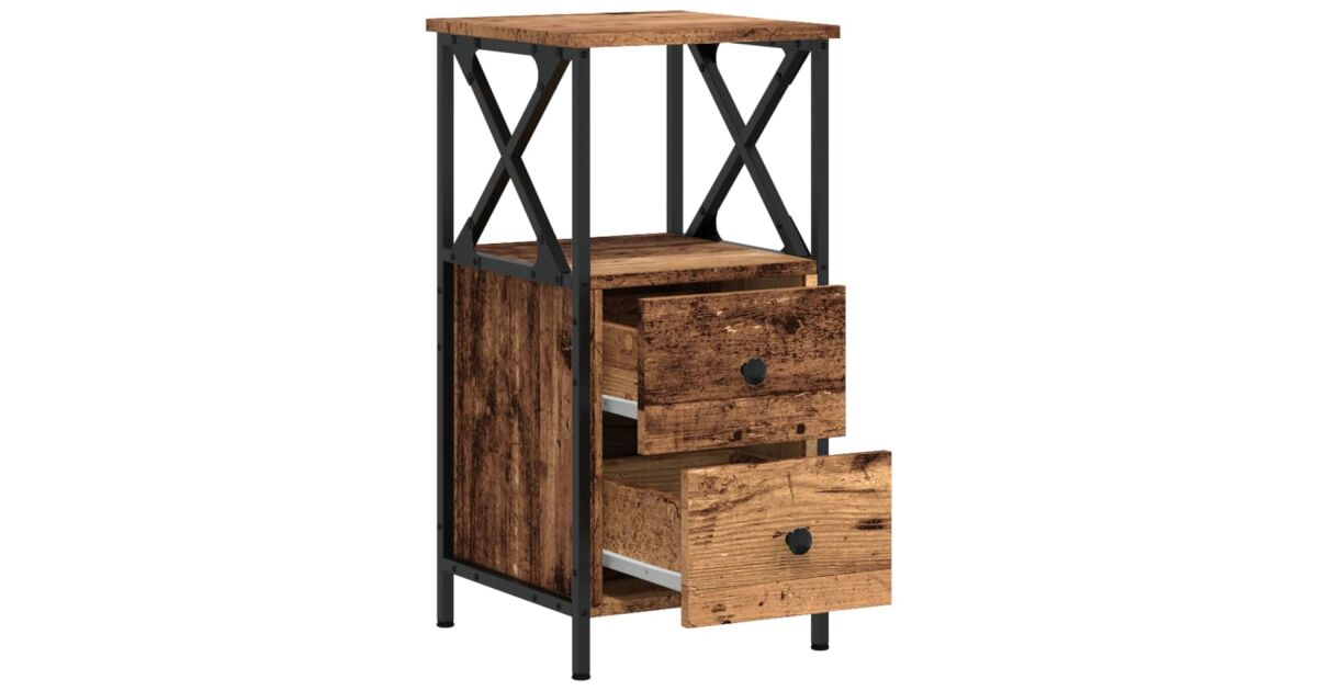 Ezek az elegáns és klasszikus kialakítású, divatos éjjeliszekrények szebbé teszik otthonát. Tartós anyag: A szerelt fa kivételes minőségű, sima felületű, szilárd, stabil, és ellenáll a nedvességnek. A szerelt fából készült éjjeliszekrény nedves ruhával könnyen tisztítható.Bőséges tárolóhely: Az éjjeliasztal 2 fiókkal és egy rekesszel rendelkezik, így bőséges helyet biztosít folyóiratai, könyvei, távirányítói és egyéb apró tárgyai kézközelben történő rendezett tárolásához.Masszív felső lap: Az éjjeliszekrény masszív teteje ideális dísztárgyak, képkeretek és cserepes növények elhelyezésére.Fémlábak: A fémlábak modern és visszafogott stílust kölcsönöznek otthonának, ráadásul a stabilitásról is gondoskodnak. Figyelem:A felborulás elkerülése érdekében ezt a terméket a mellékelt fali rögzítőeszközzel kell használni.Színe: antik faAnyaga: szerelt fa, fémTeljes mérete: 34 x 35,5 x 70 cm (Szé x Mé x Ma)Összeszerelést igényel: igenA csomag tartalma:2 db éjjeliszekrényLegal Documents: