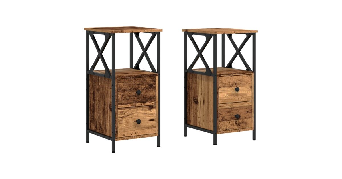 vidaXL 2 db antik fa színű szerelt fa éjjeliszekrény 34 x 35,5 x 70 cm