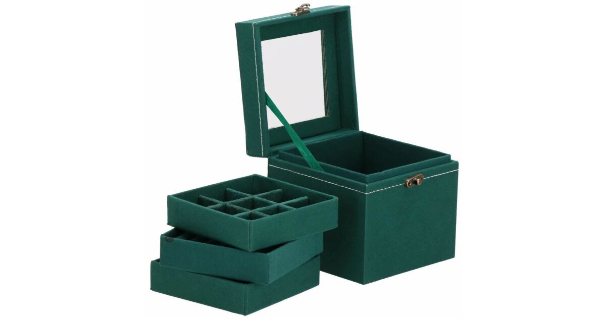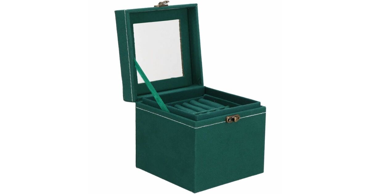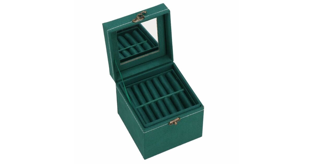 Springos - Zöld Bársony Ékszerdoboz - Tükörrel - 12x12x12 cm leírása