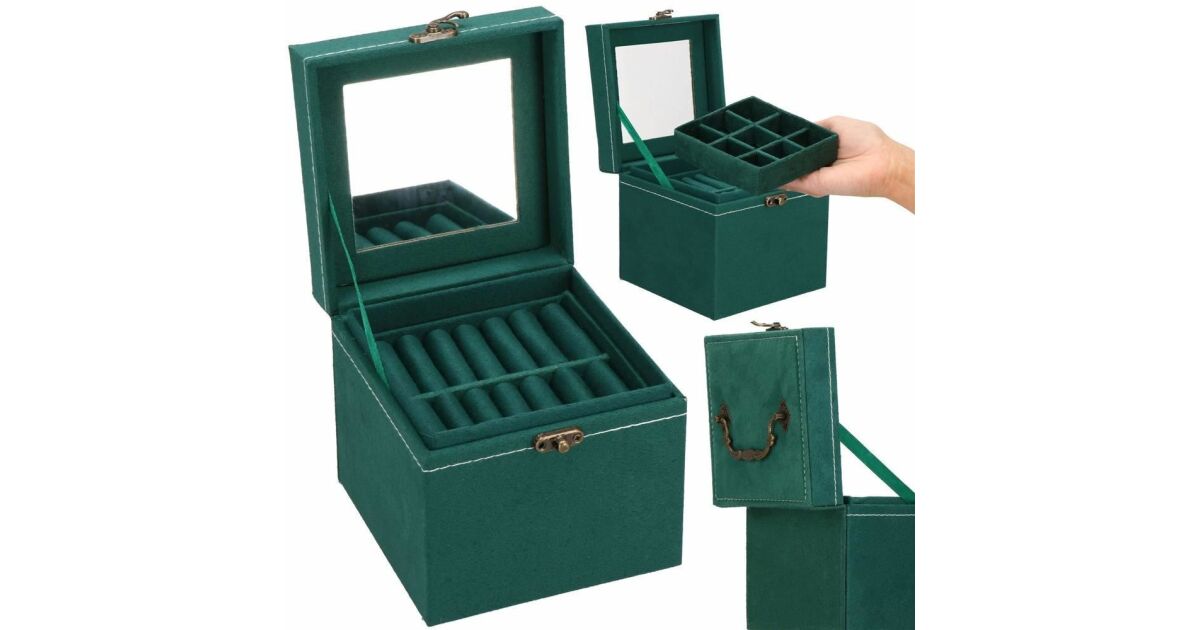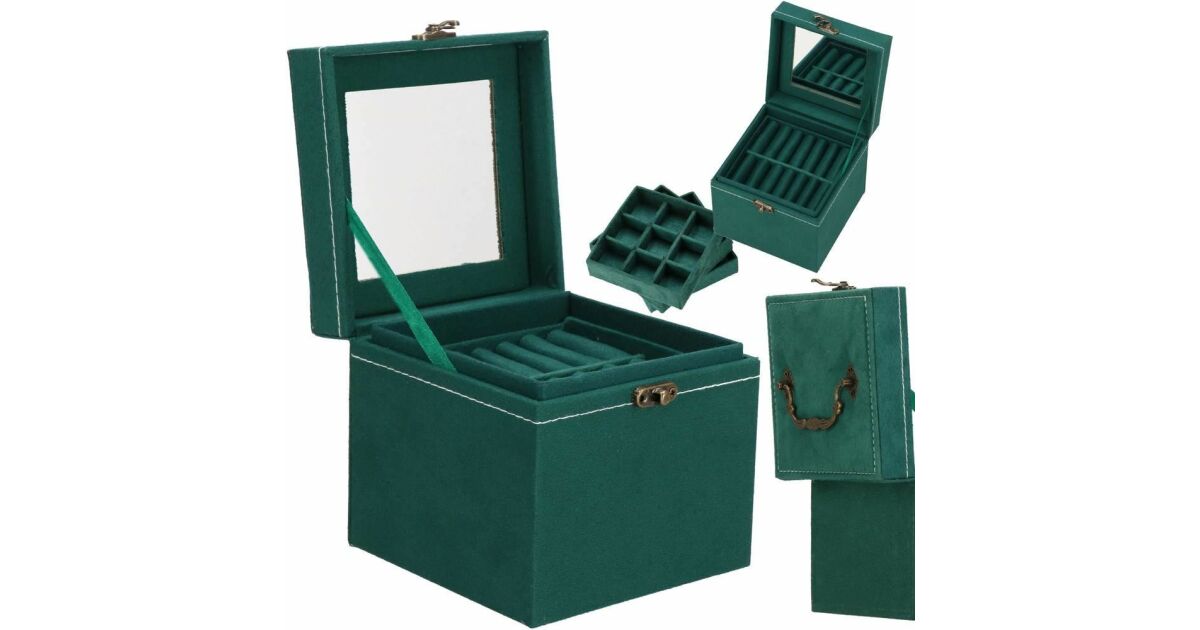 Elegáns Zöld Bársony Ékszerdoboz Tükörrel - Tökéletes Ékszereid Tárolására ✨