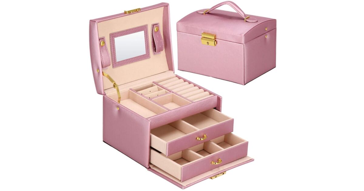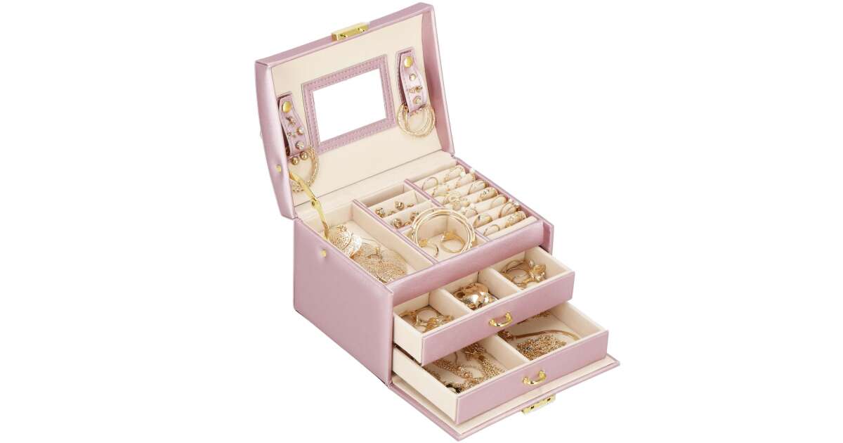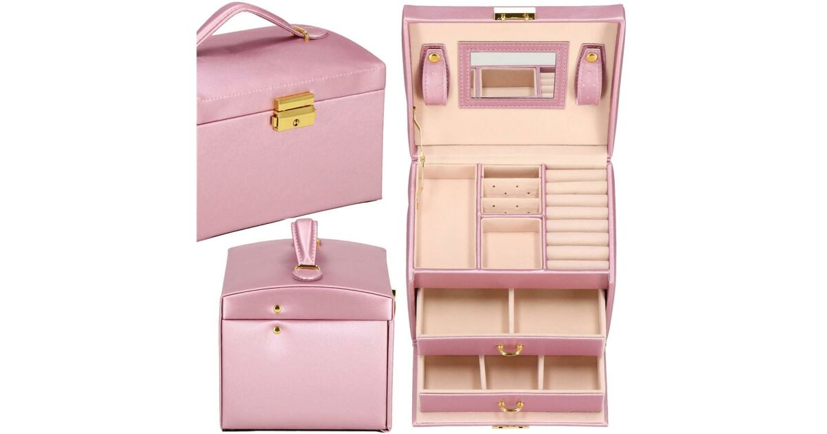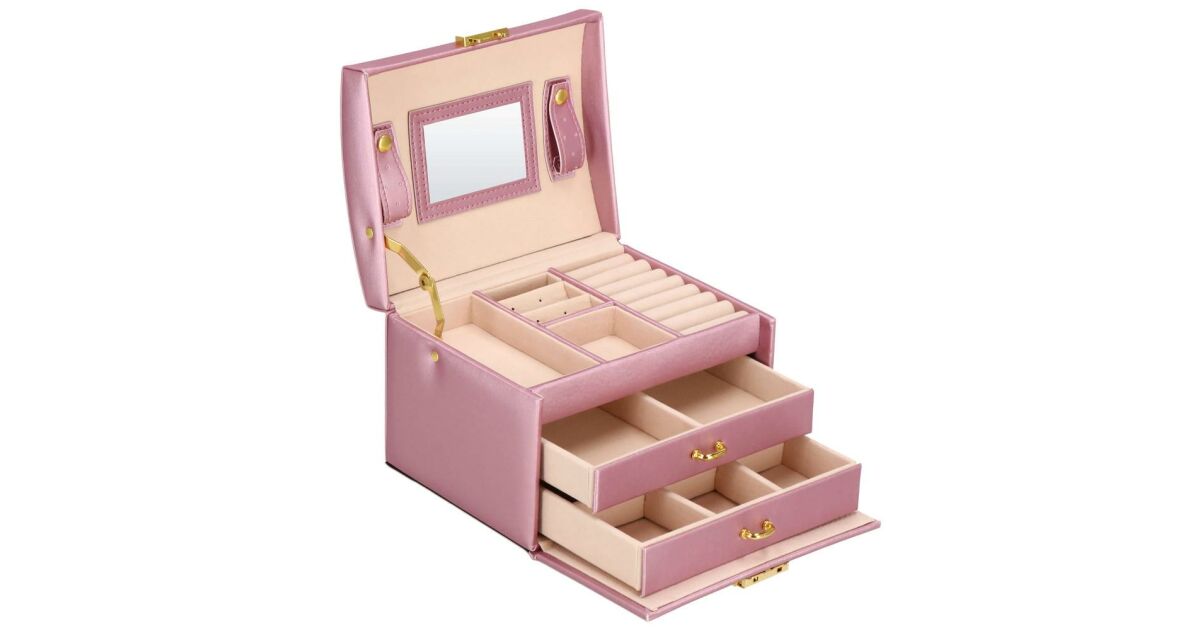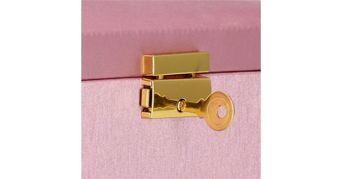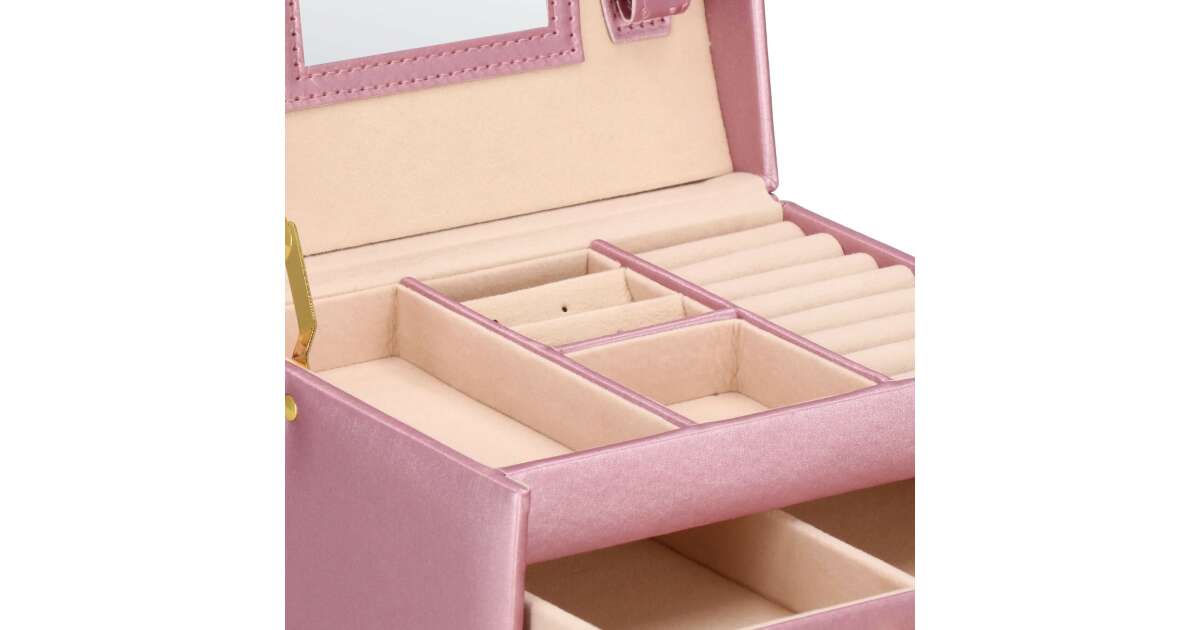 Tágas és praktikus: A két fiók és a különféle rekeszek gondoskodnak arról, hogy minden ékszered biztonságban és rendezett módon legyen tárolva. A beépített tükör pedig segít a sminkelésben és az ékszerek kiválasztásában.