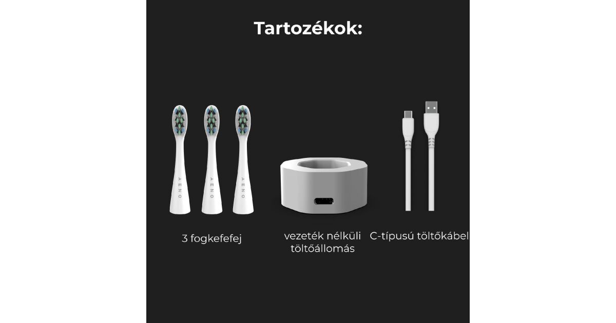 - 12 üzemmód: 4 alapbeállítás (Soft, Clean, Massage, White) és 8 intelligens mód az AENO applikációban (ínyápolás, expressz tisztítás, mélytisztítás, fogszabályzóhoz optimalizált mód, mélyfehérítés stb.).
