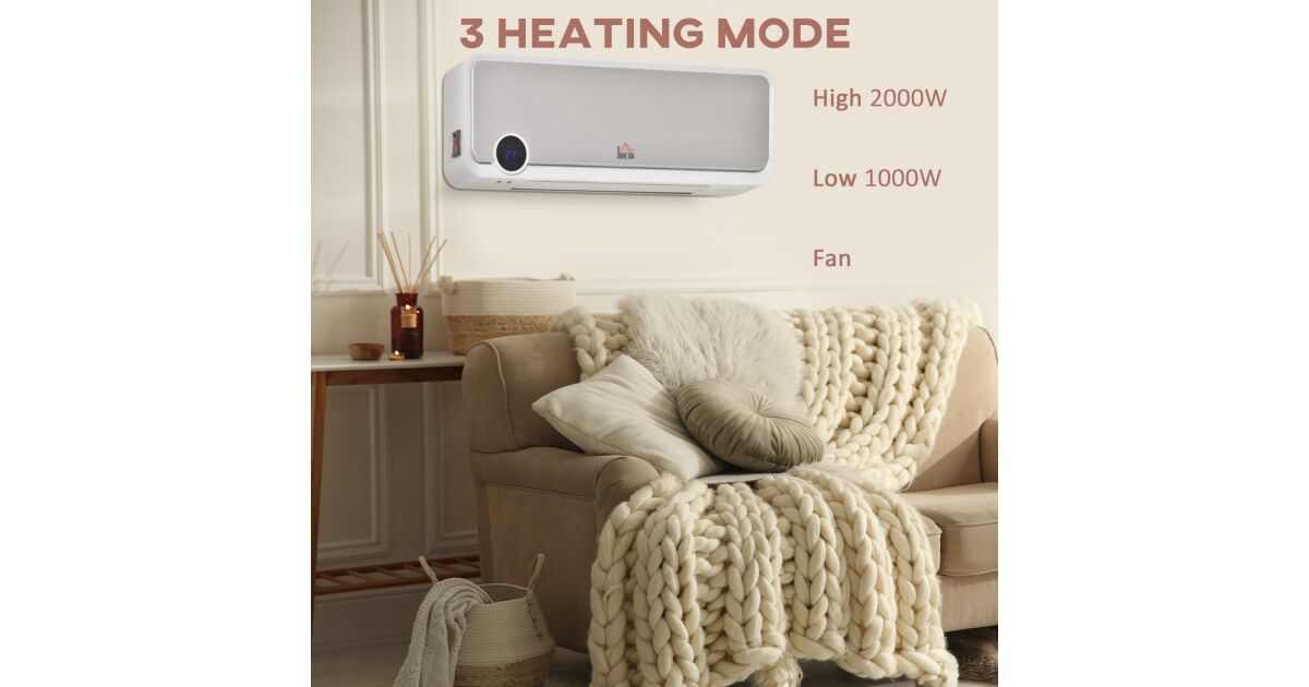 Ezt a terméket így is ismerheted: HOMCOM fali ventilátoros fűtőtest 3 üzemmóddal, 12 órás időzítővel és 30°-os oszcillációval, 56x18,5x11,7 cm, ezüst