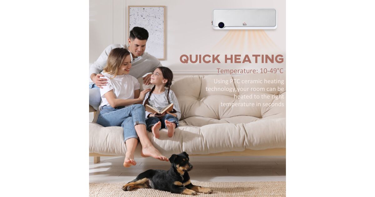 A HOMCOM fali ventilátoros fűtőtest ideális választás, ha gyorsan és hatékonyan szeretné felfűteni a szobáját, fürdőszobáját vagy bármely más helyiséget otthonában. A PTC kerámia fűtési technológiának köszönhetően pillanatok alatt kellemes hőmérsékletet varázsol, miközben helytakarékos megoldást kínál.