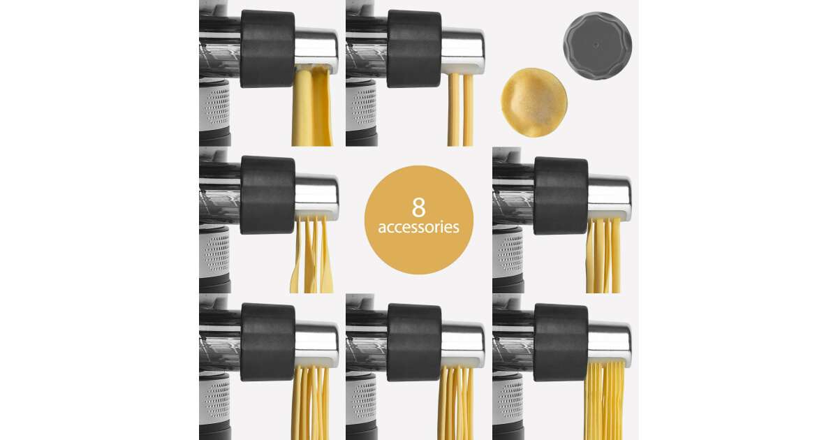 Készítsen változatos tésztákat a 7 különböző formázófej segítségével: spagetti (vékony, közepes, széles), tagliatelle, penne, fettuccine és lasagna. Kísérletezzen az ízekkel: adjon hozzá paradicsomot, pestot, olajbogyót vagy bármilyen más kedvenc hozzávalóját a tésztához.