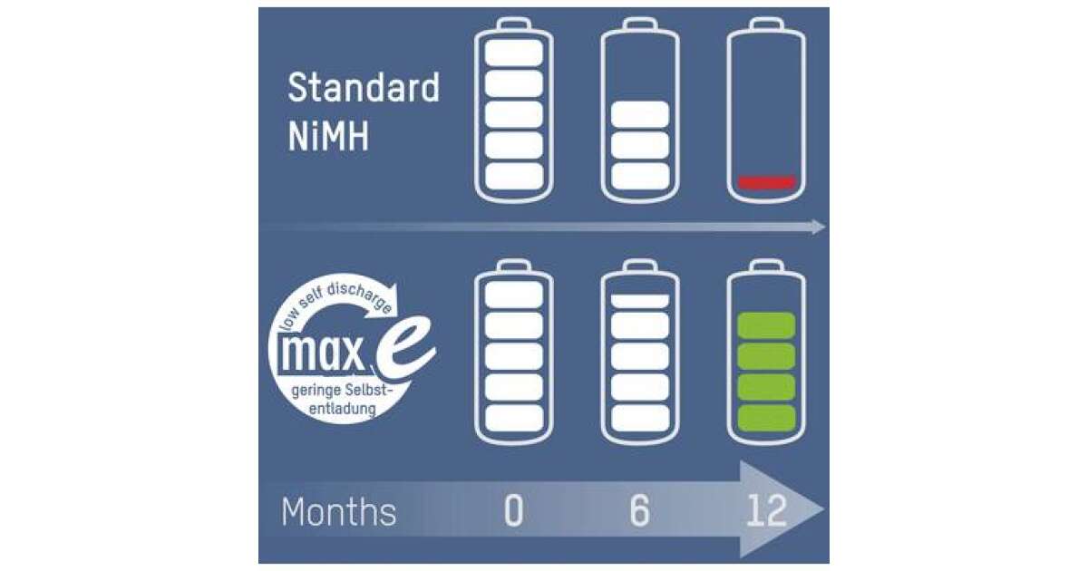 - Rendkívül alacsony önkisülés: Tízszer kisebb, mint a hagyományos NiMH akkumulátoroké. Egy év után is megőrzi a kezdeti kapacitás 80%-át! 🔋