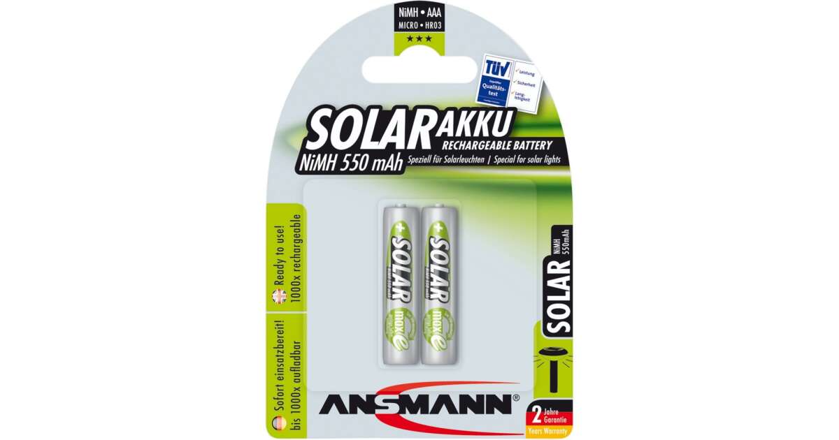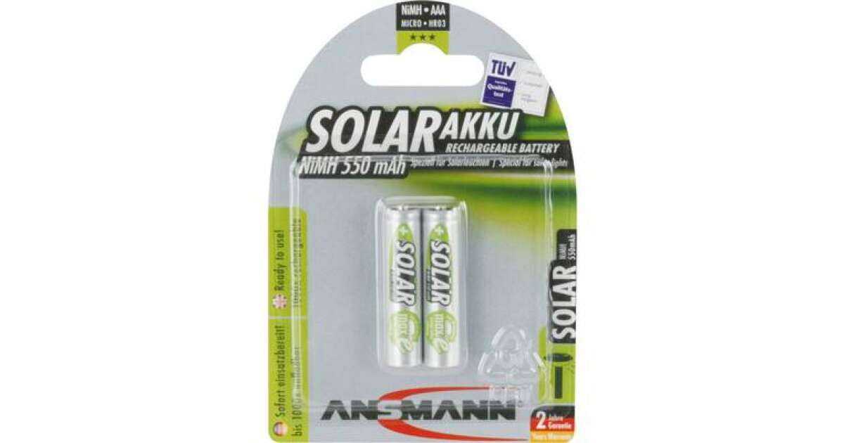 Kiváló minőségű, újratölthető Ansmann Solar maxE NiMH mikro (AAA) akkumulátorok 2 darabos kiszerelésben. Tökéletes választás napelemes eszközökhöz, például napelemes lámpákhoz. 💡