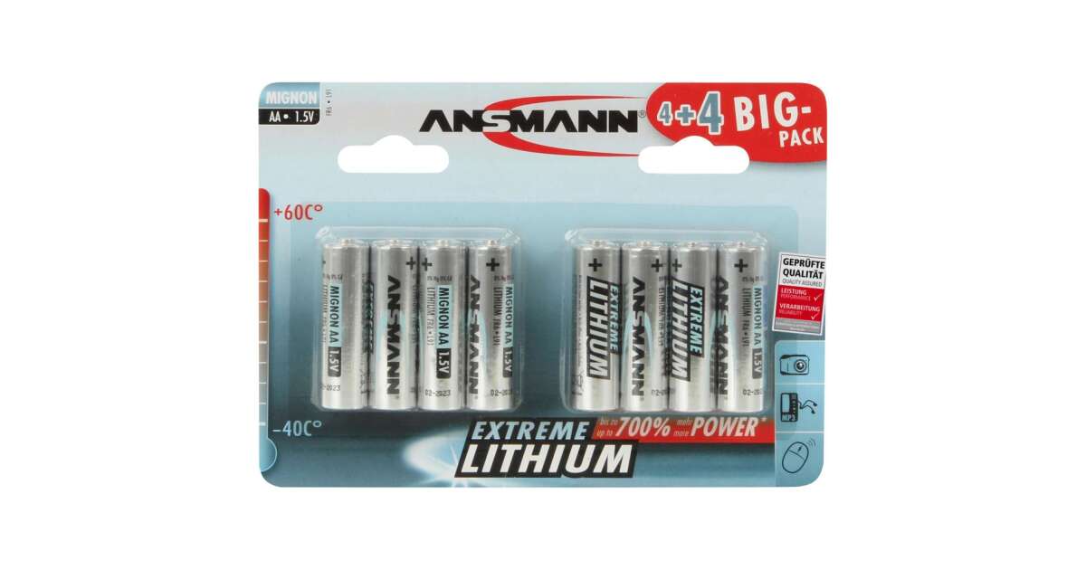 Ezt a terméket így is ismerheted: Ansmann Extreme Lithium AA Elemek - 8 db (4+4)