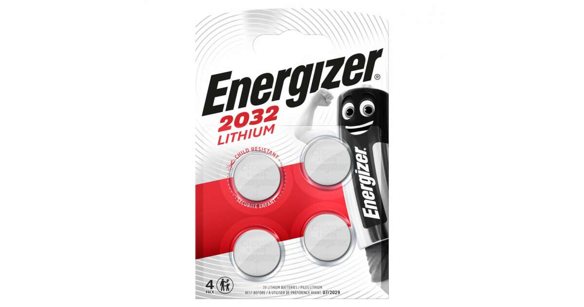 CR2032 lítium gombelem, 3 V, 240 mA, 4 db, Energizer BR2032, DL2032, ECR2032, KCR2032, KL2032, KECR2032, LM2032 vásárlás: