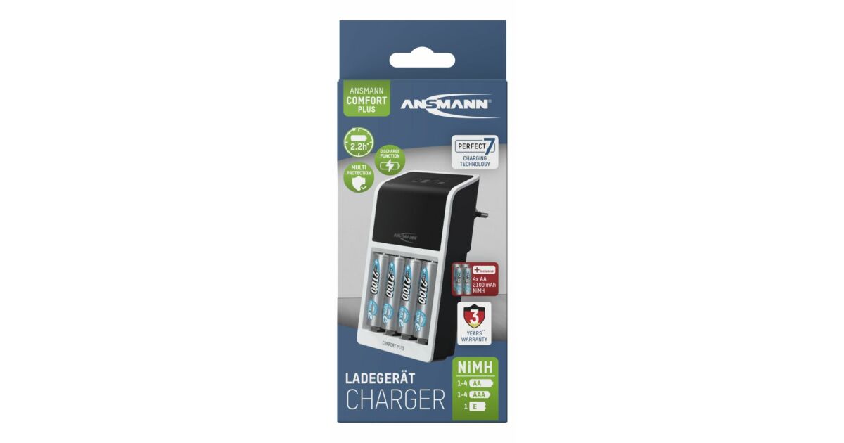 Az Ansmann Comfort Plus akutöltő tökéletes választás AA és AAA NiMH akkumulátorok töltéséhez. A beépített "PERFECT 7" technológia biztosítja az akkumulátorok optimális töltését és maximális élettartamát. A csomagban 4 db AA 2100mAh akkumulátor is található.