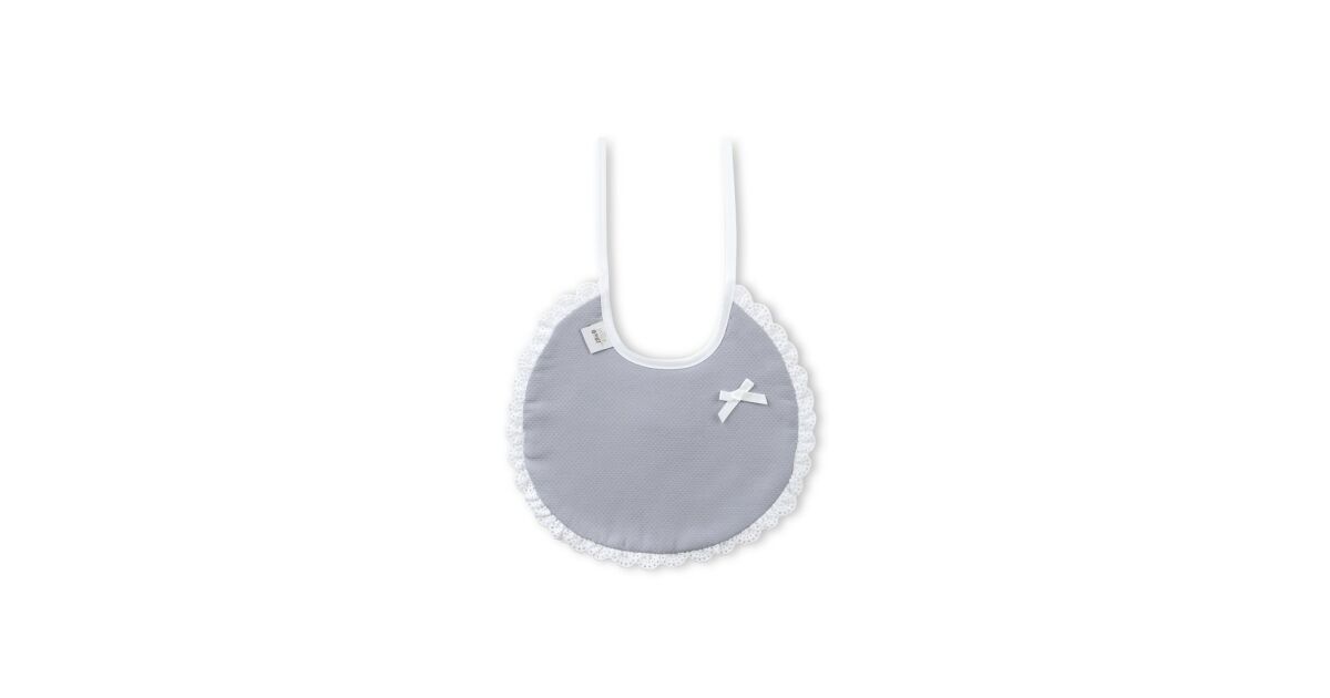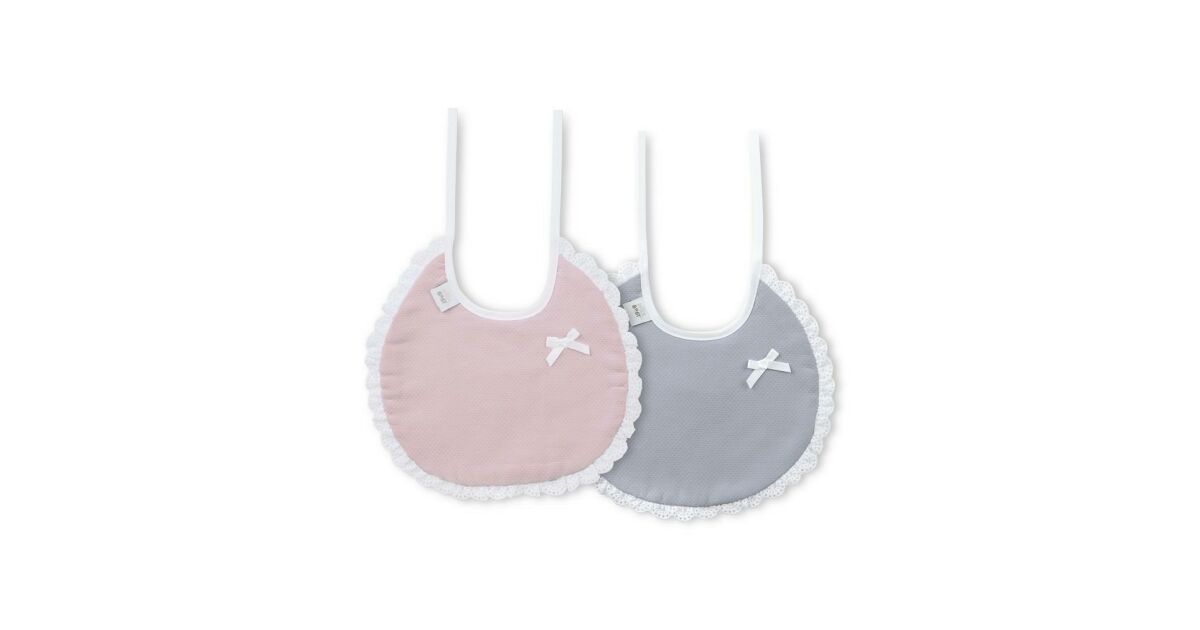 Ezt a terméket így is ismerheted: Pamut előke 2 db csipke szegéllyel szürke-rózsaszín kerek