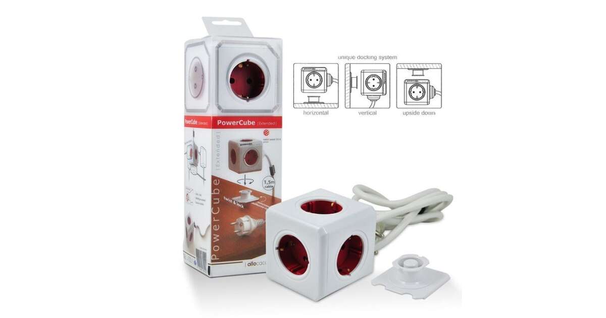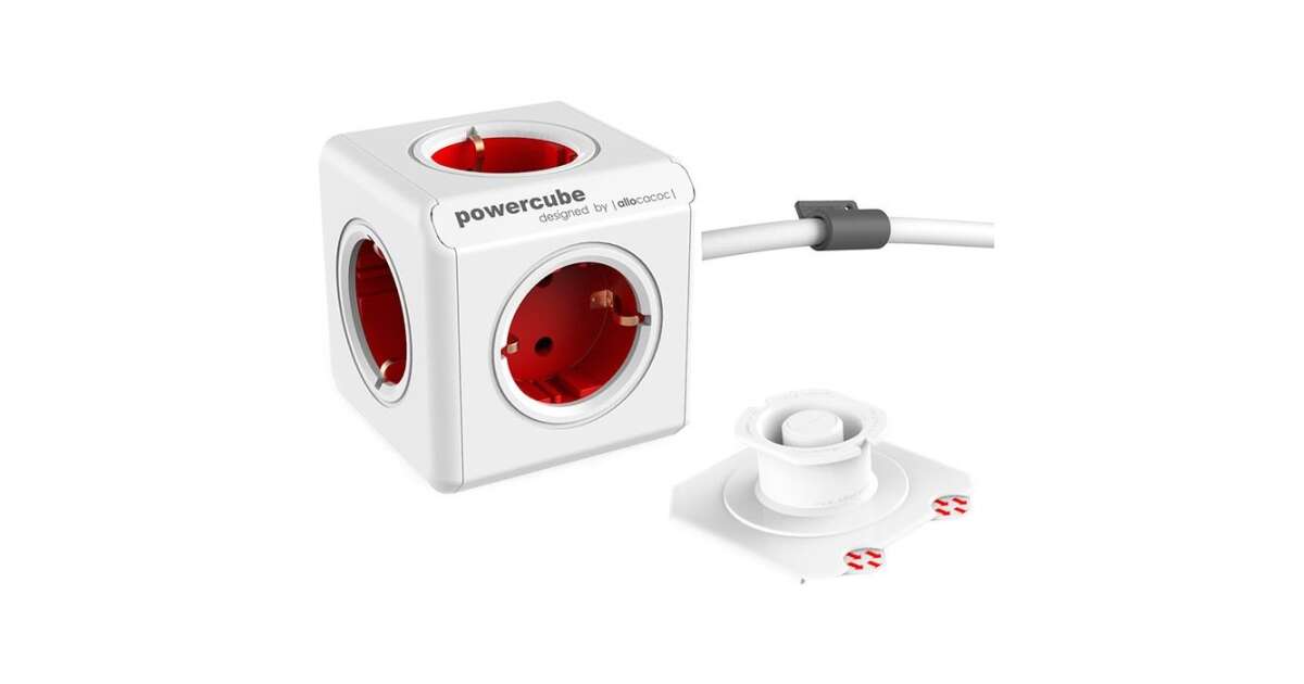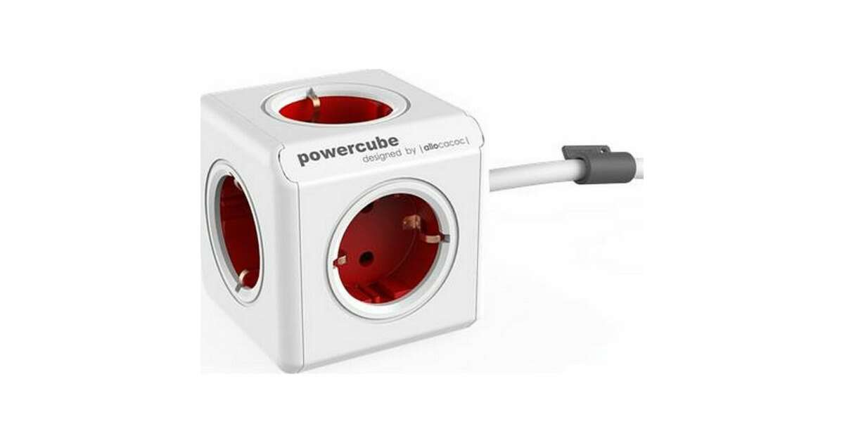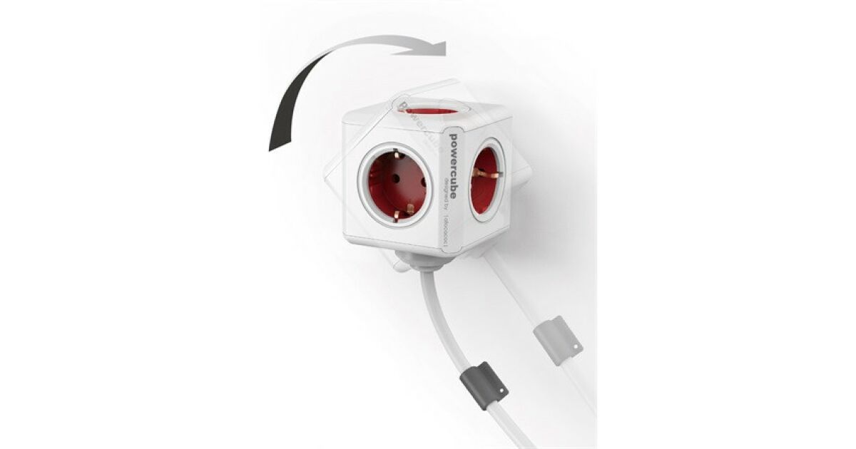ALLOCACOC Elosztó, 5 aljzat, 1 rögzítő elem, 1,5 m kábelhosszúság, ALLOCACOC "PowerCube Extended DE", fehér-piros vásárlás: