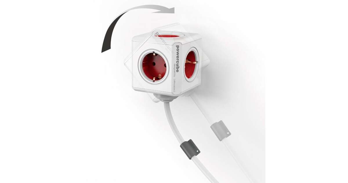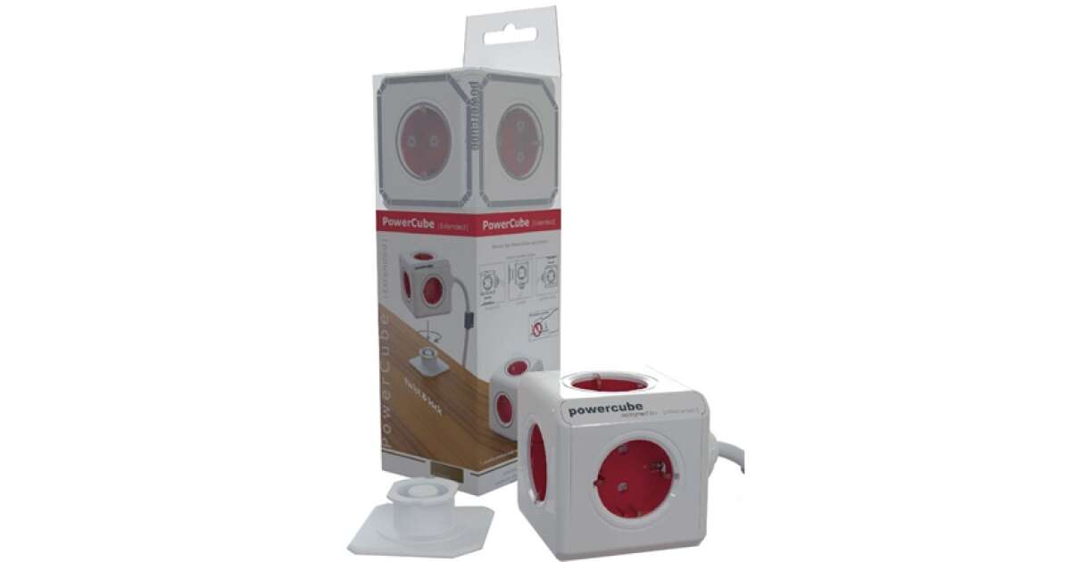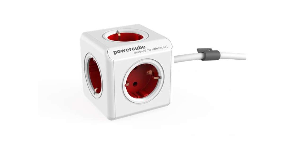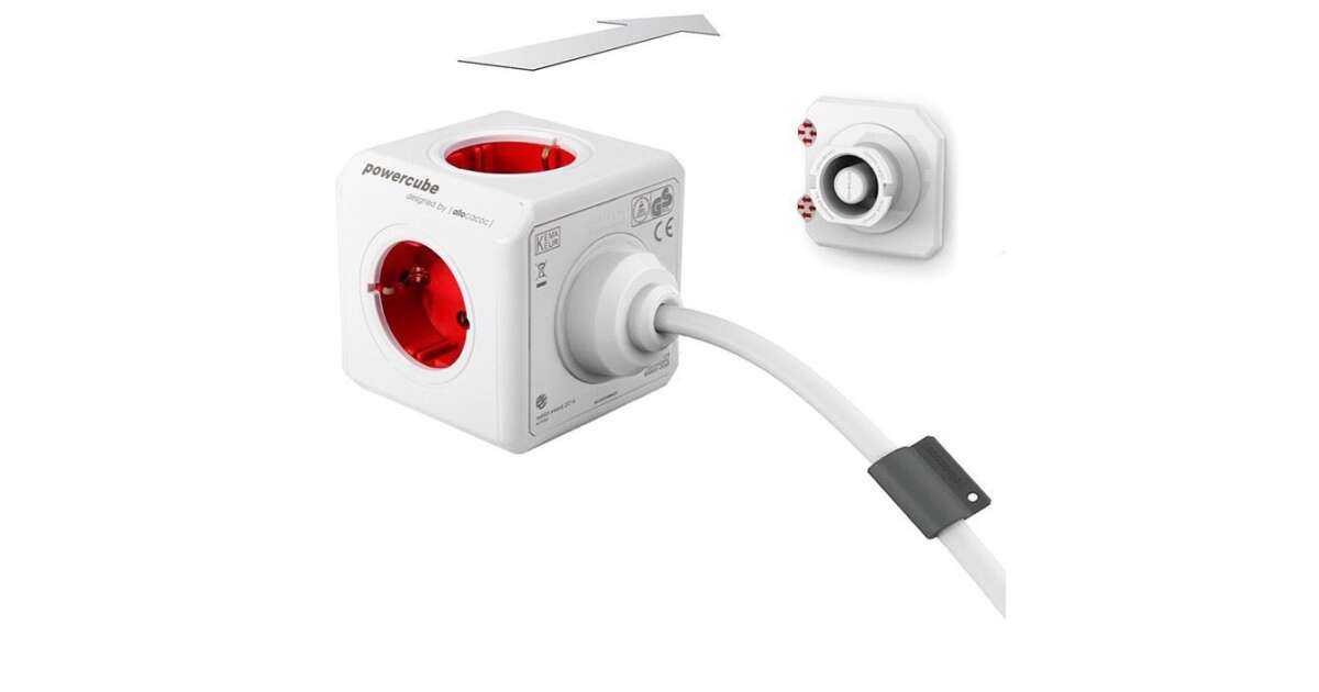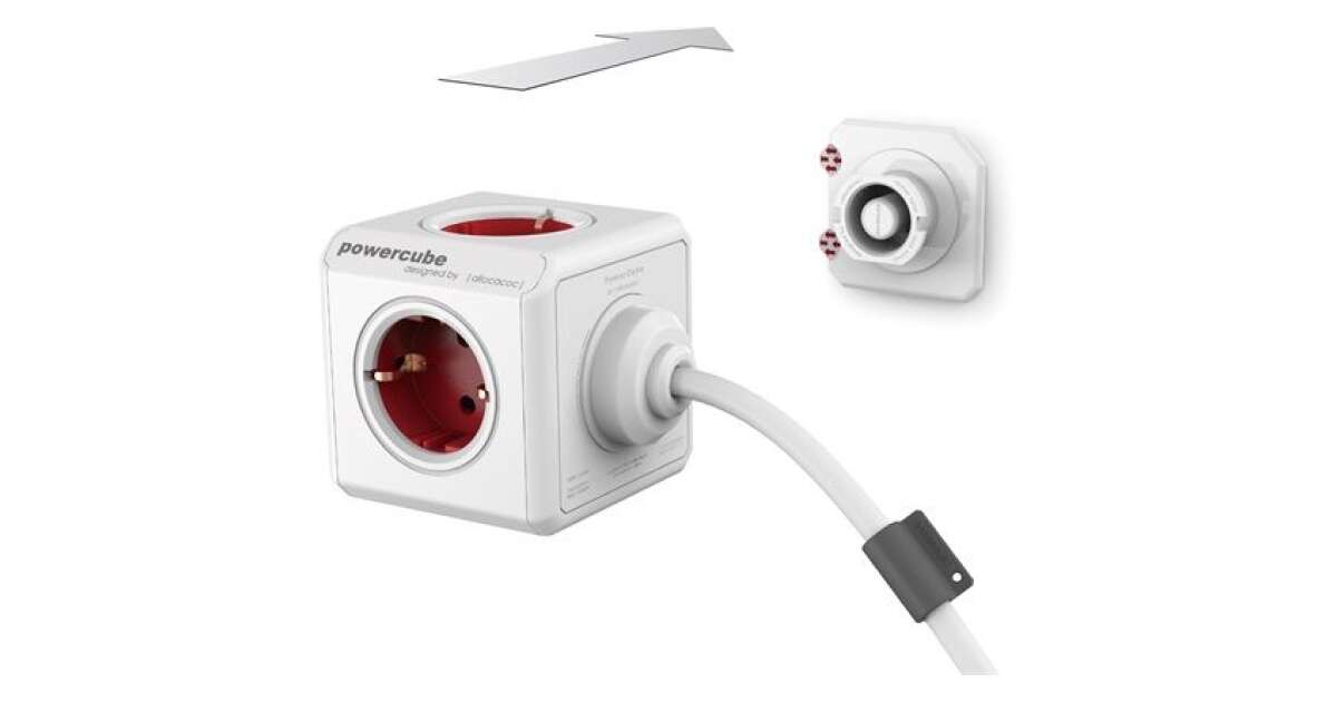 ALLOCACOC Elosztó, 5 aljzat, 1 rögzítő elem, 1,5 m kábelhosszúság, ALLOCACOC "PowerCube Extended DE", fehér-piros vásárlás: