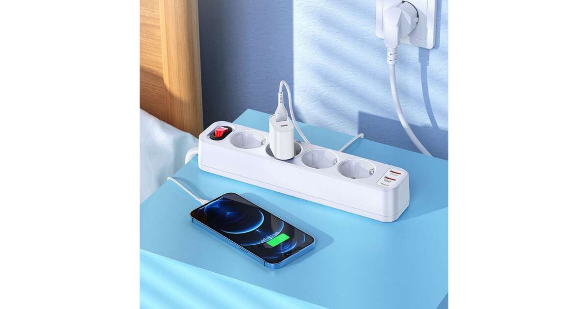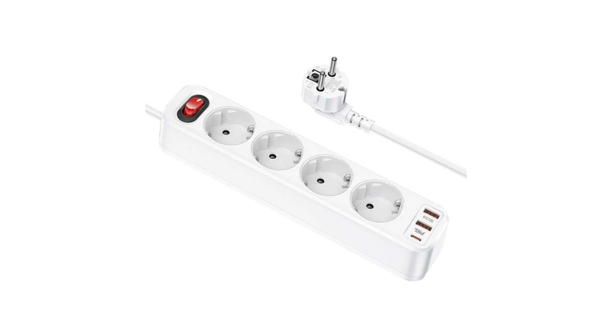 HOCO Power Strip 4 bites hosszabbító kábel aljzat + 2 x USB QC3.0 18W + Type-C PD 20W Aura NS1 fehér vásárlás:
