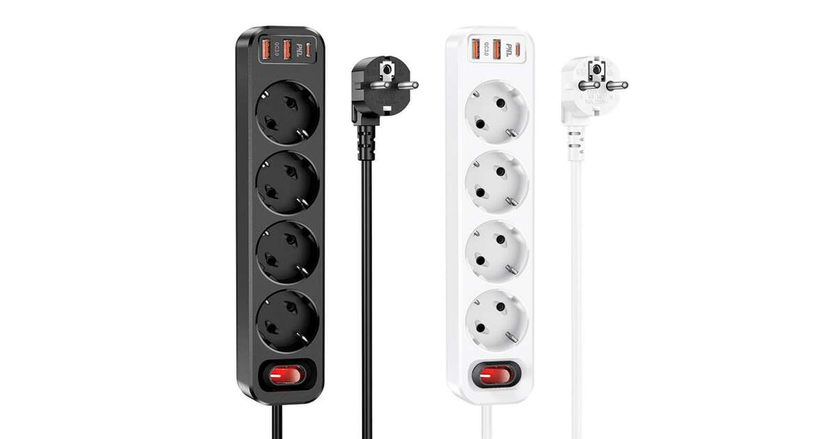 Ezt a terméket így is ismerheted: HOCO Power Strip 4 bites hosszabbító kábel aljzat + 2 x USB QC3.0 18W + Type-C PD 20W Aura NS1 fehér