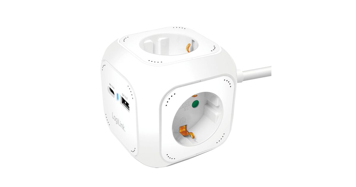 Logilink 4-utas töltőkocka, 4x aljzat, 1x USB-C PD 20W, 1x USB-A QC 18W, fehér (LPS283U)