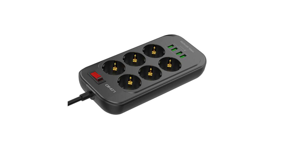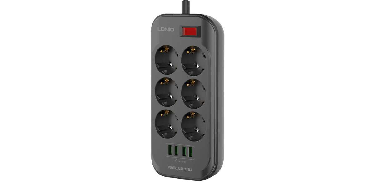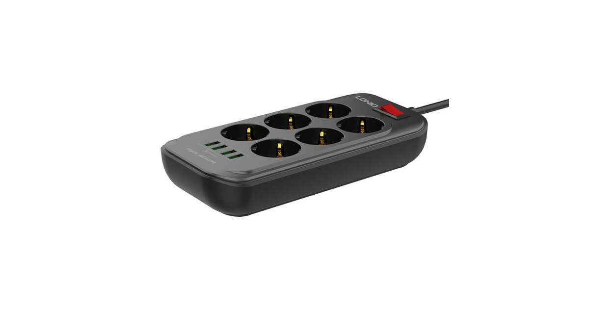 Power strip with 6 AC outlets, 4x USB, LDNIO SE6403, 2m (black) leírása