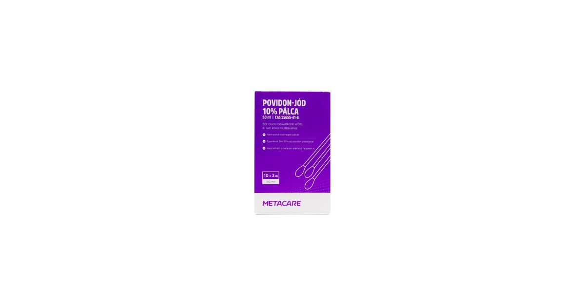 METACARE povidon-jód 10% tamponpálca - 10 x 3 db - 60 ml leírása