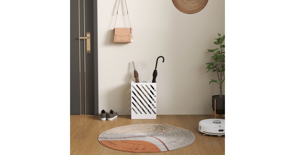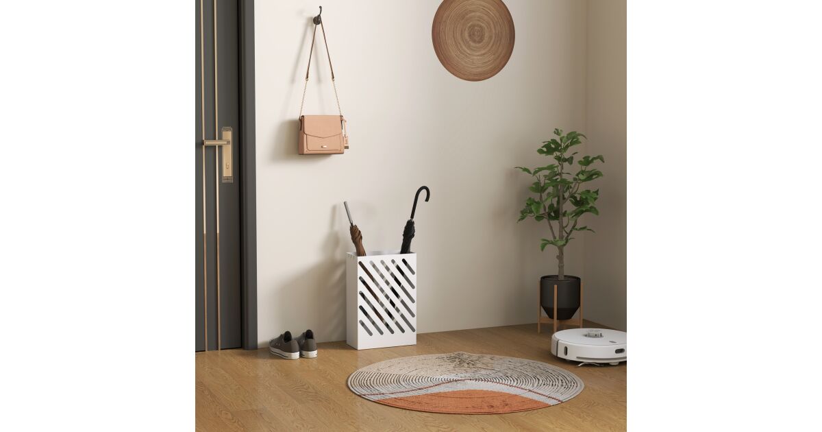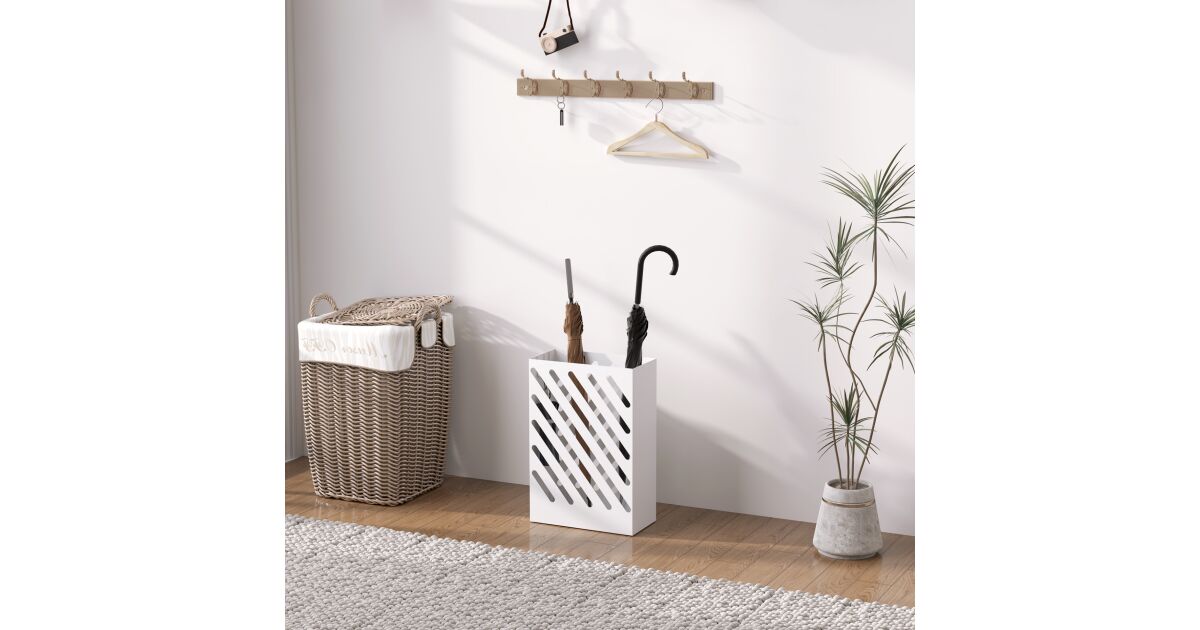 HOMCOM Fehér Esernyőtartó Csepptálcával és Akasztókkal - Stílusos megoldás a bejárat tisztán tartására! ☔