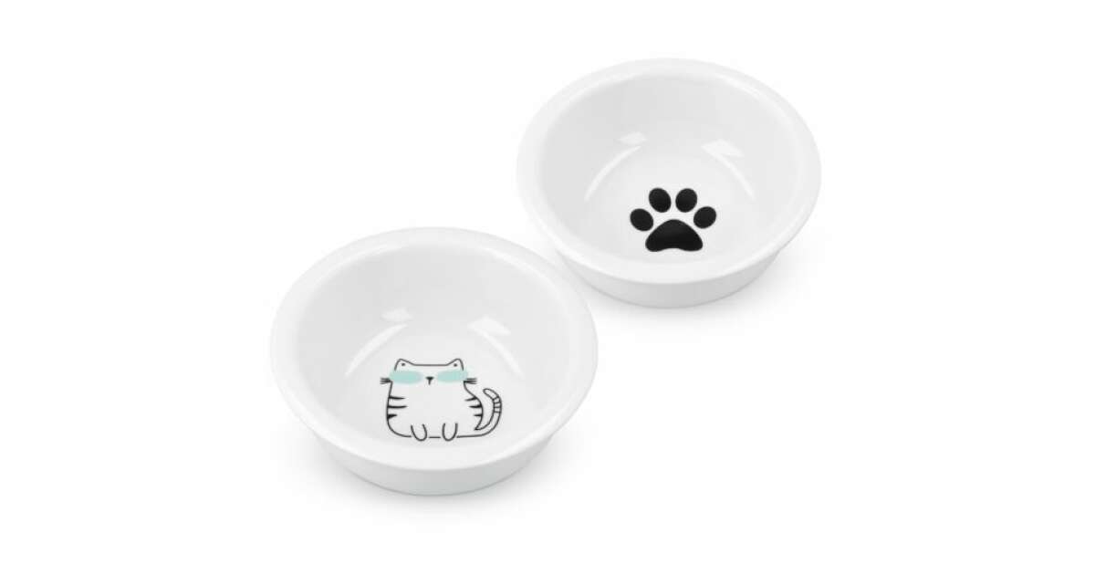 Kényeztesd kedvencedet ezzel a 2 db-os, aranyos macskás mintás porcelán tálkészlettel! Ideális száraz és nedves eledelhez, valamint vízhez egyaránt.